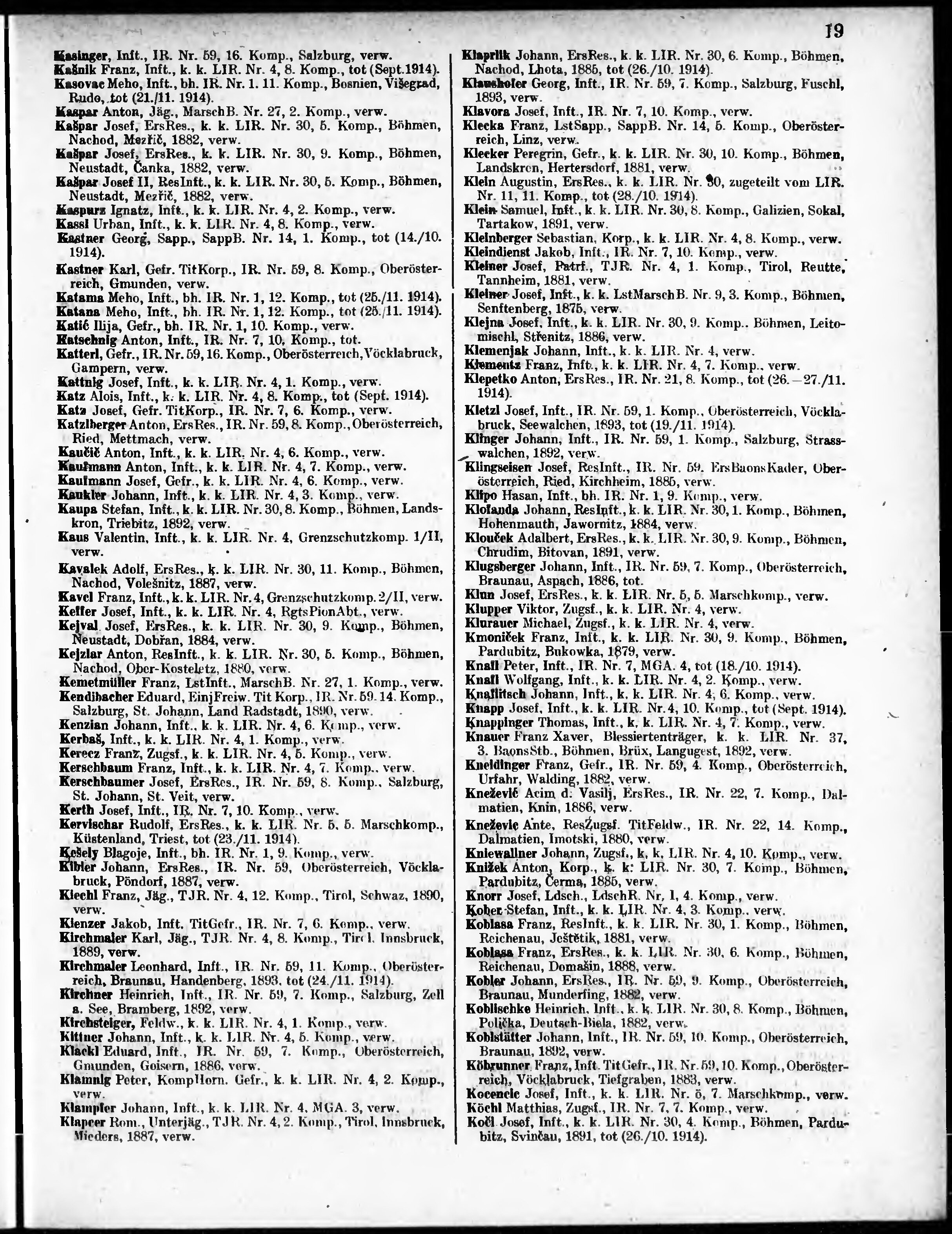 Verlustliste ausgegeben am
