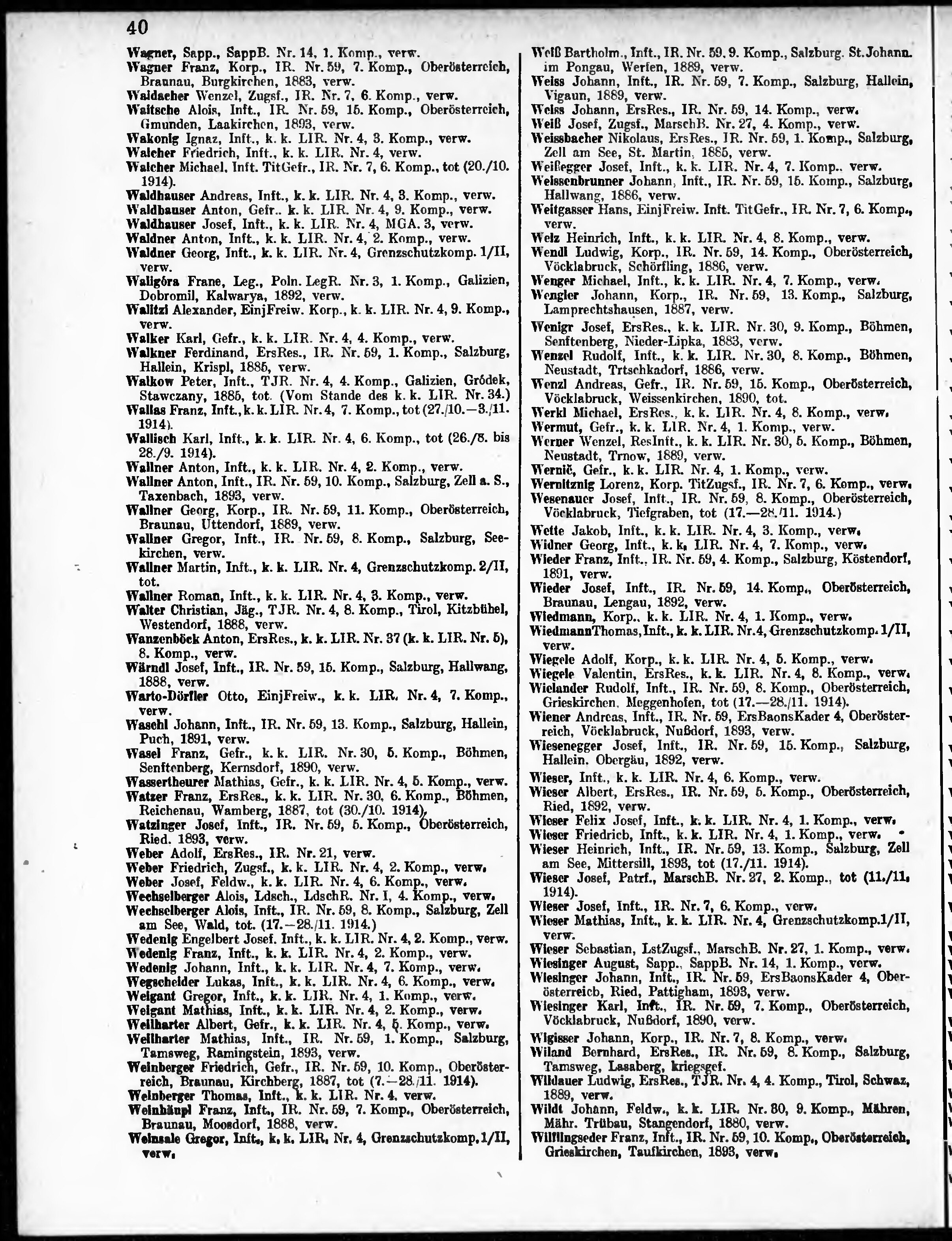 Verlustliste ausgegeben am