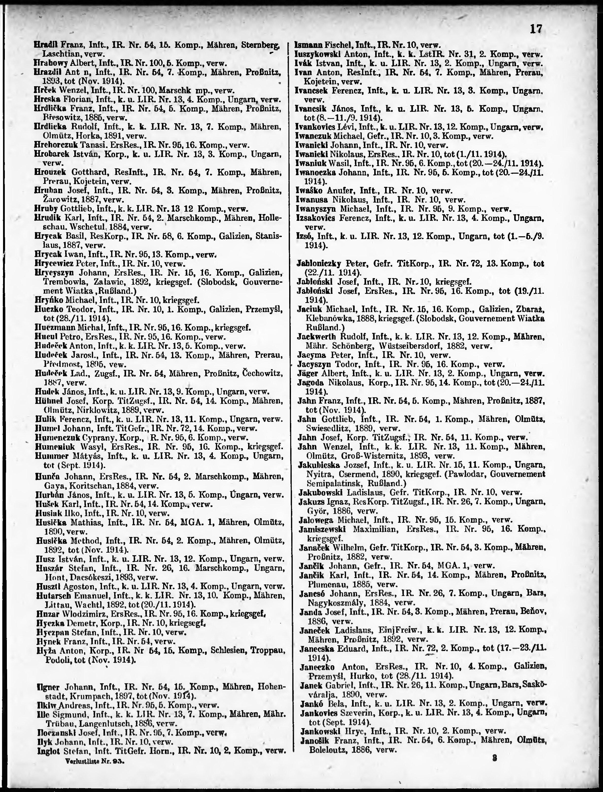 Verlustliste ausgegeben am