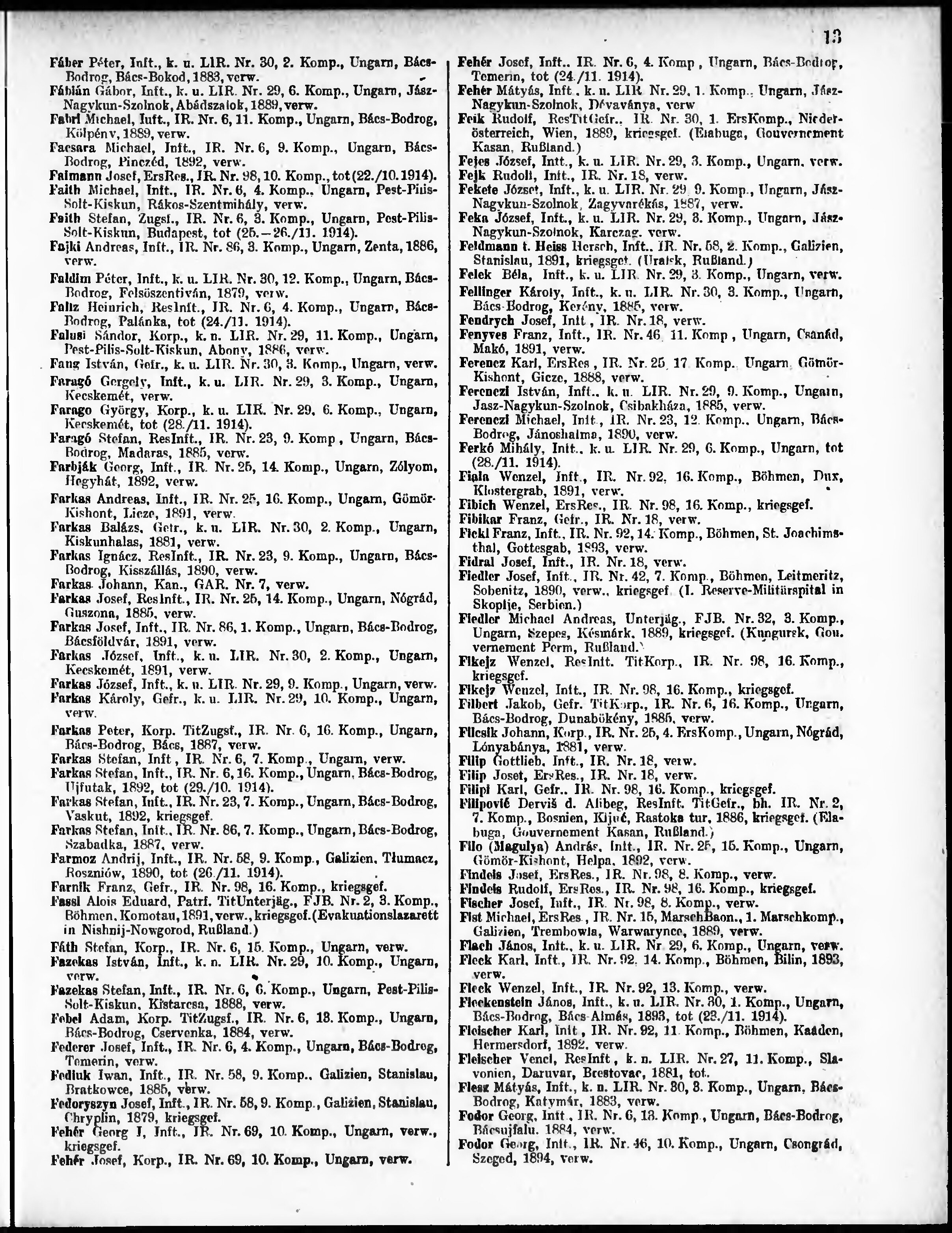 Verlustliste ausgegeben am