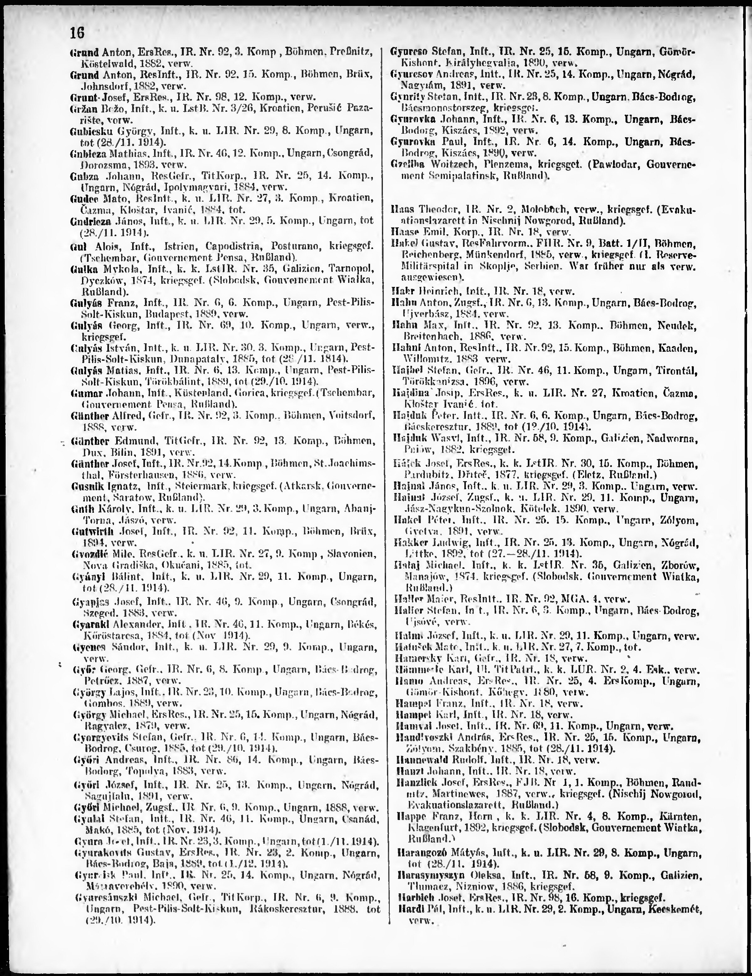 Verlustliste ausgegeben am