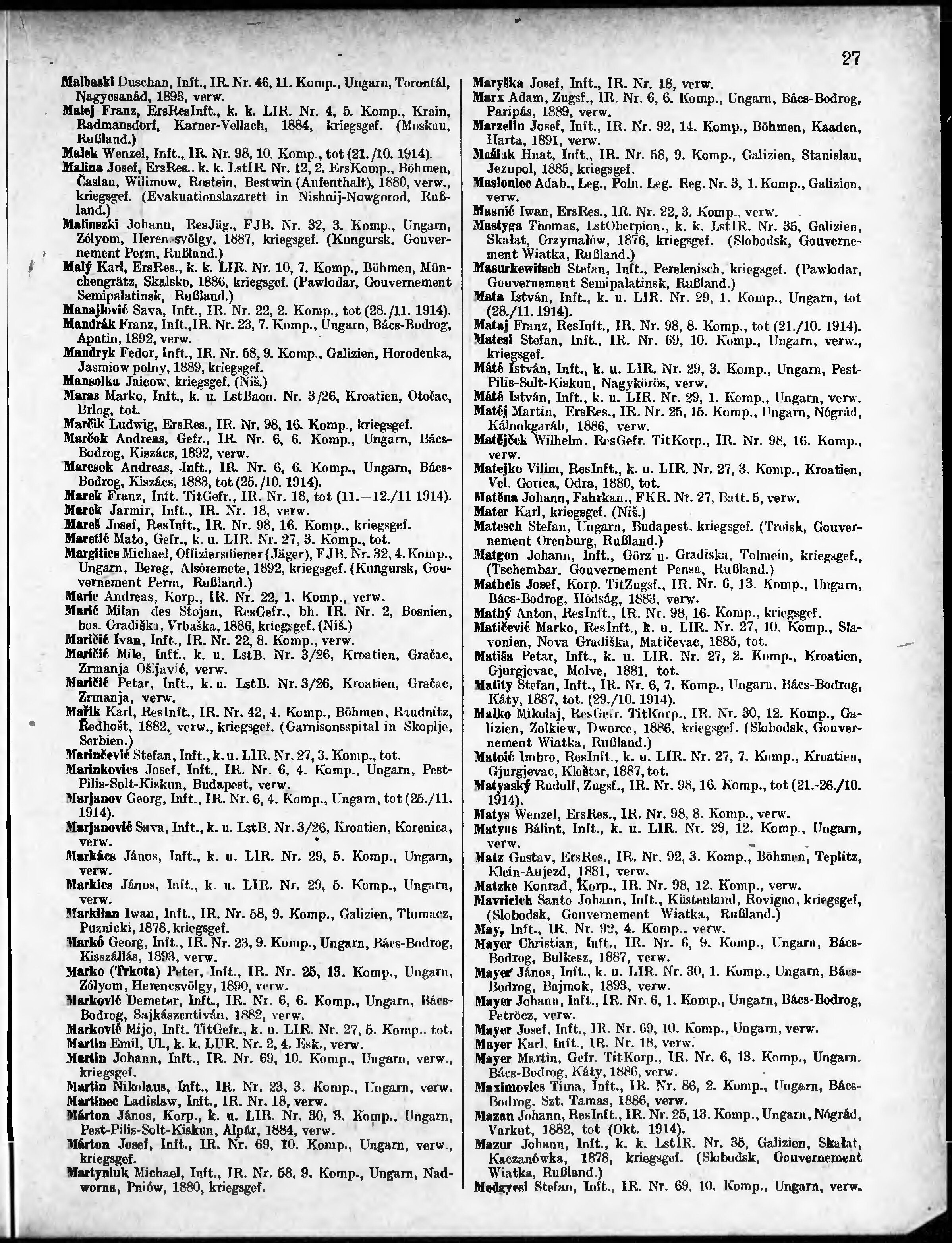 Verlustliste ausgegeben am