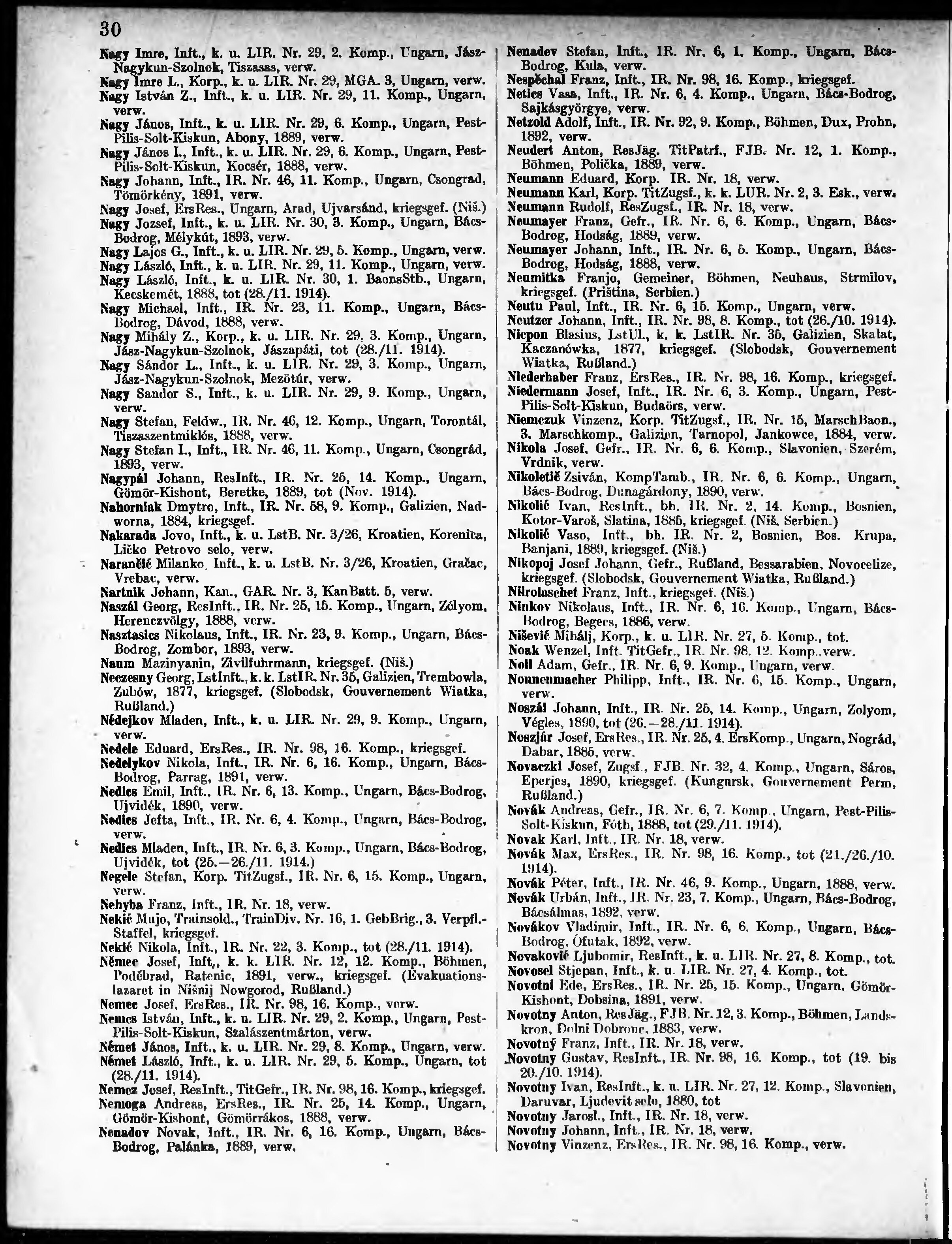 Verlustliste ausgegeben am