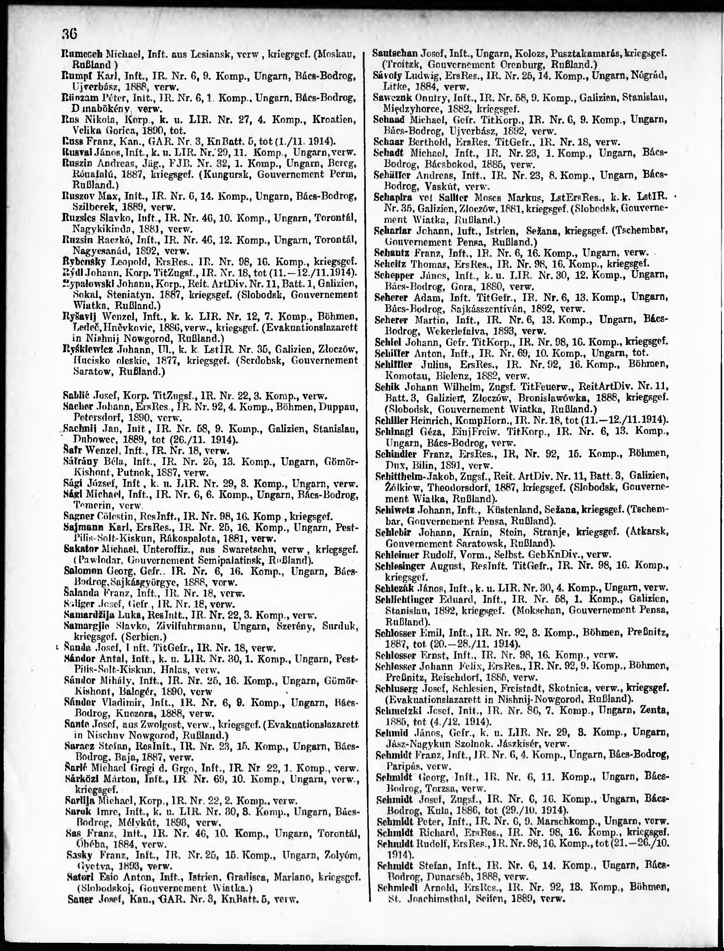 Verlustliste ausgegeben am