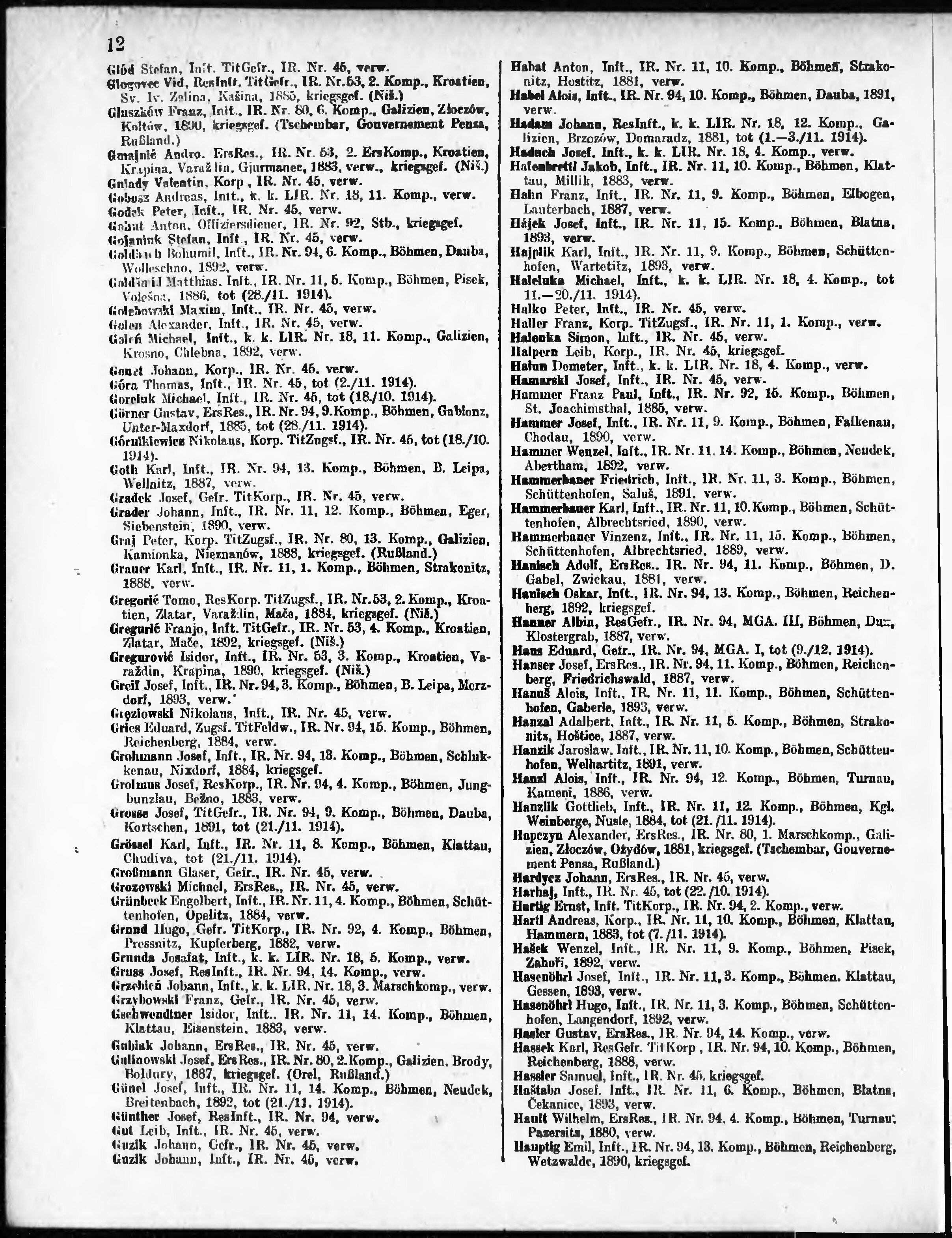 Verlustliste ausgegeben am