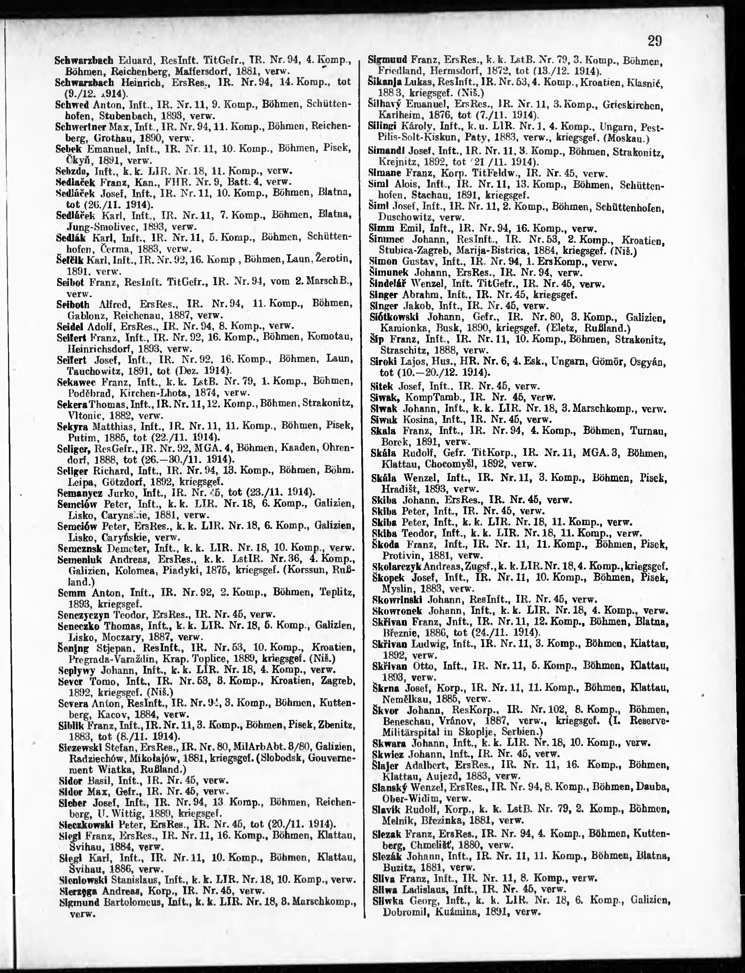 Verlustliste ausgegeben am