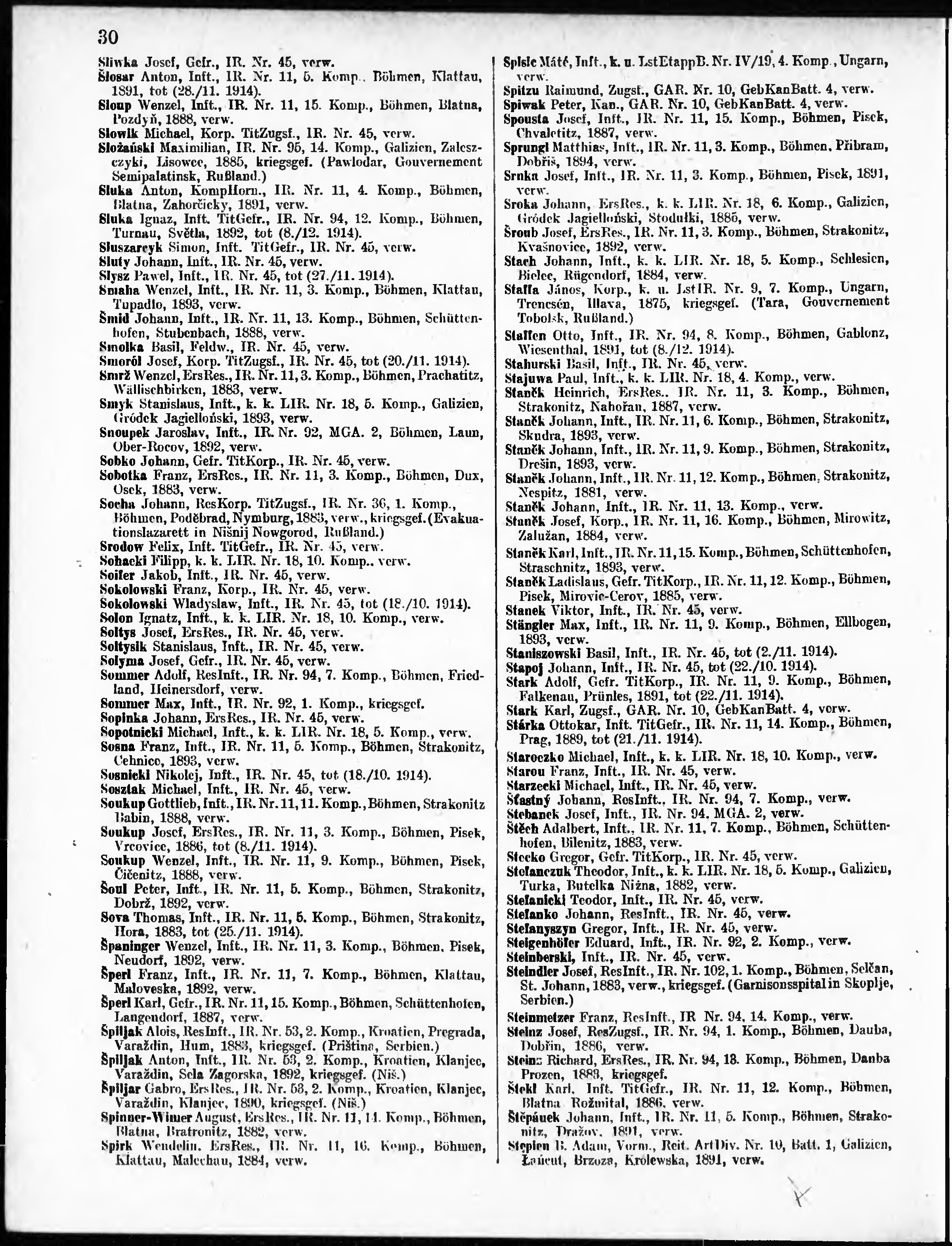 Verlustliste ausgegeben am
