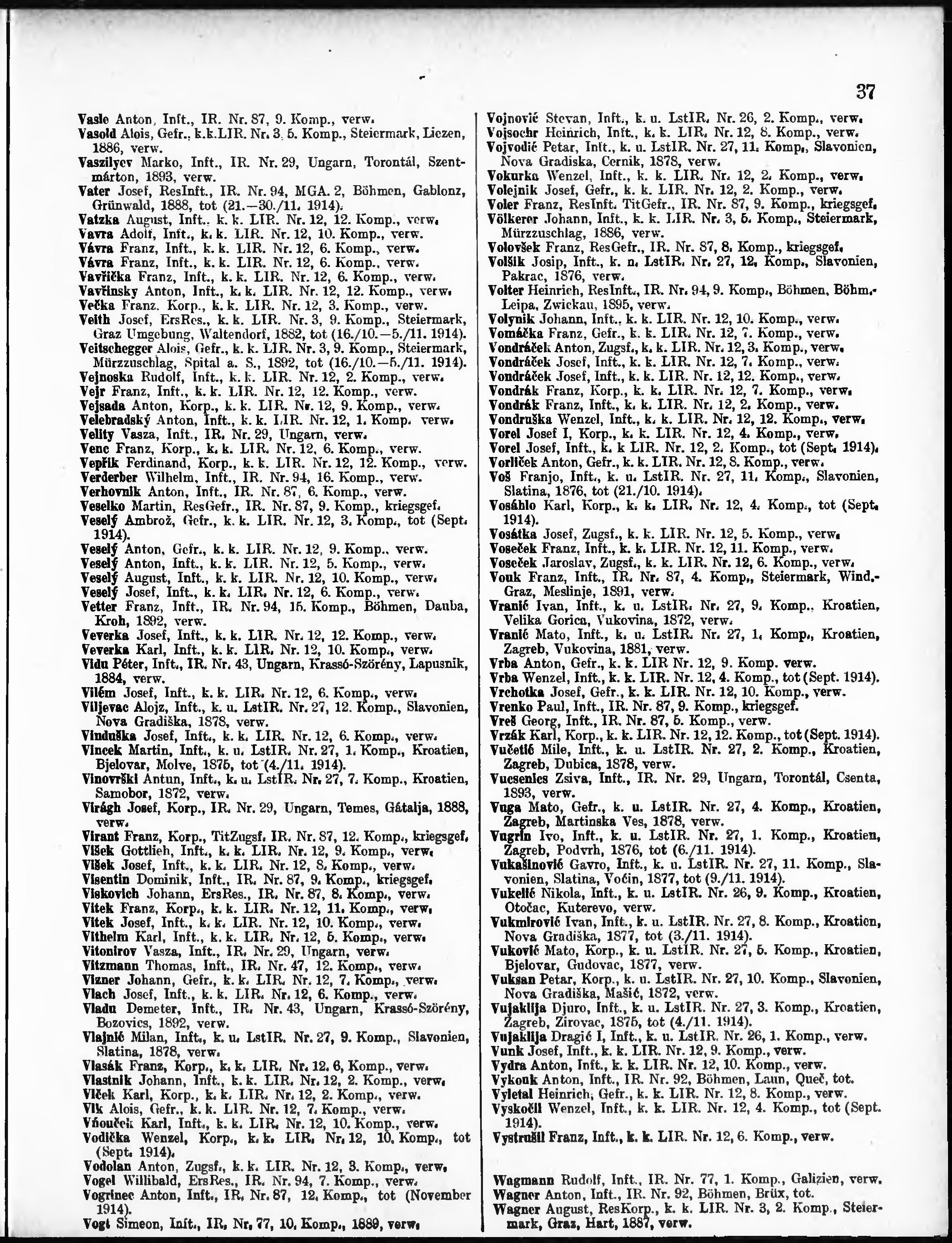 Verlustliste ausgegeben am