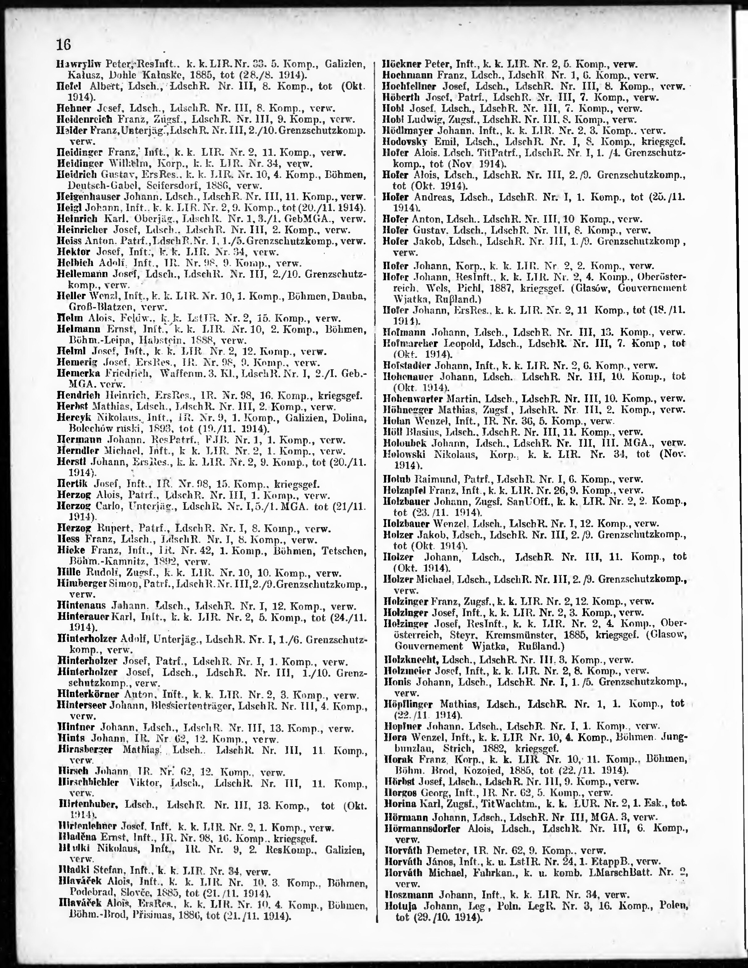 Verlustliste ausgegeben am