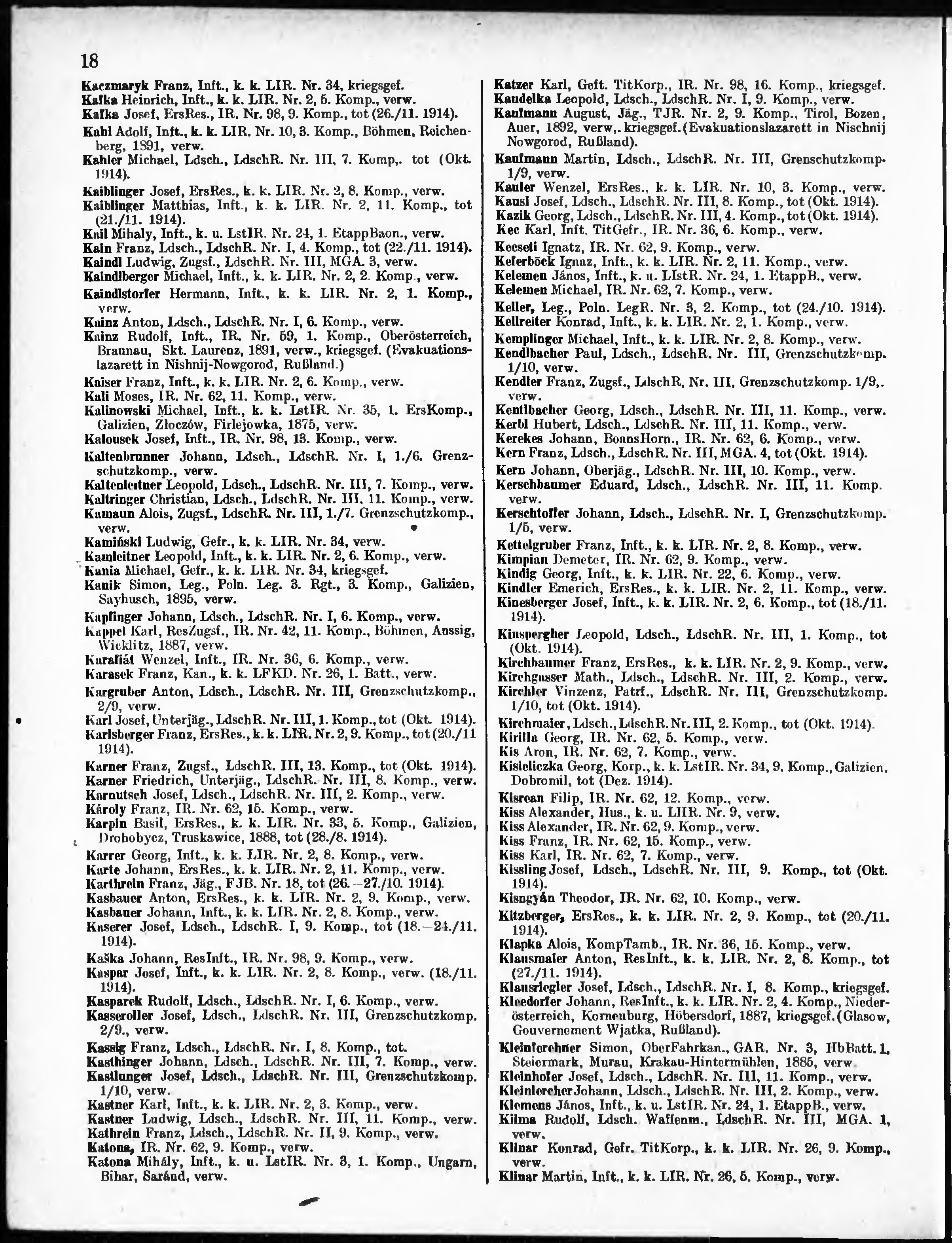 Verlustliste ausgegeben am