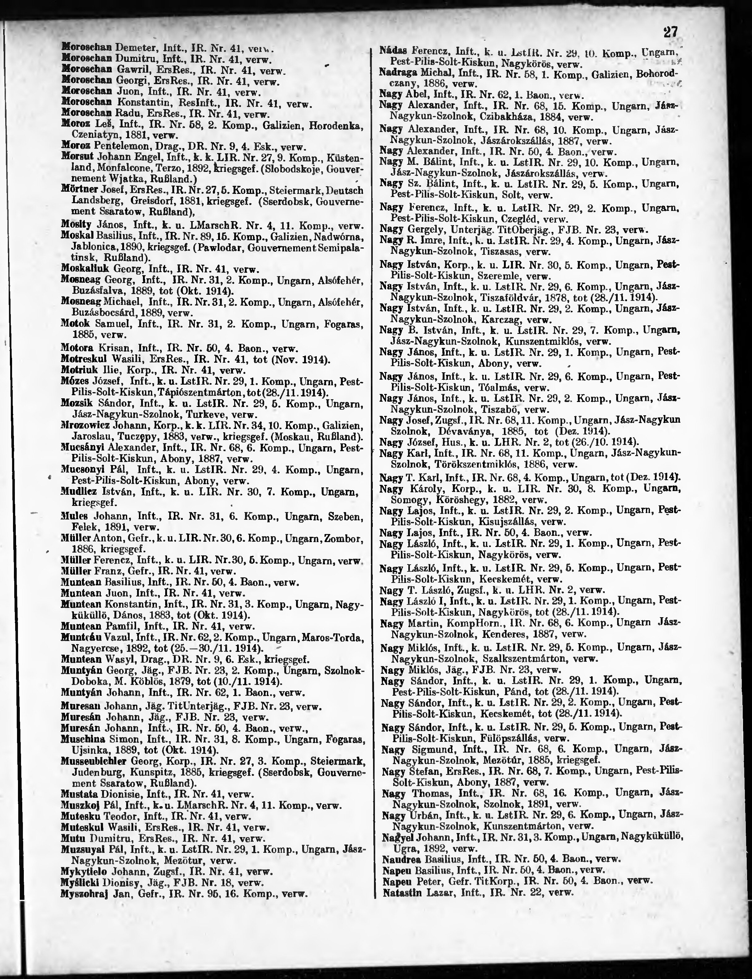 Verlustliste ausgegeben am