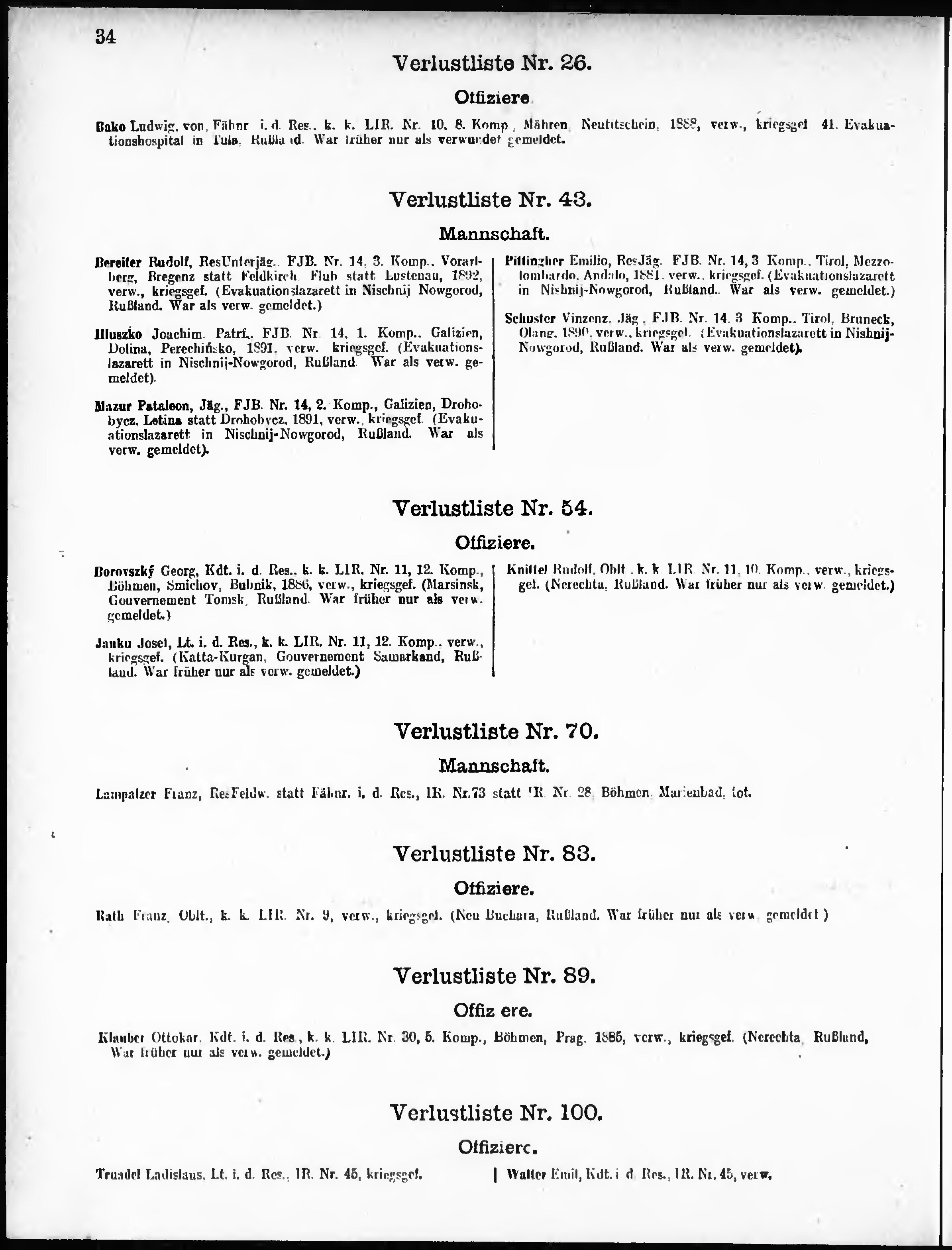 Verlustliste ausgegeben am