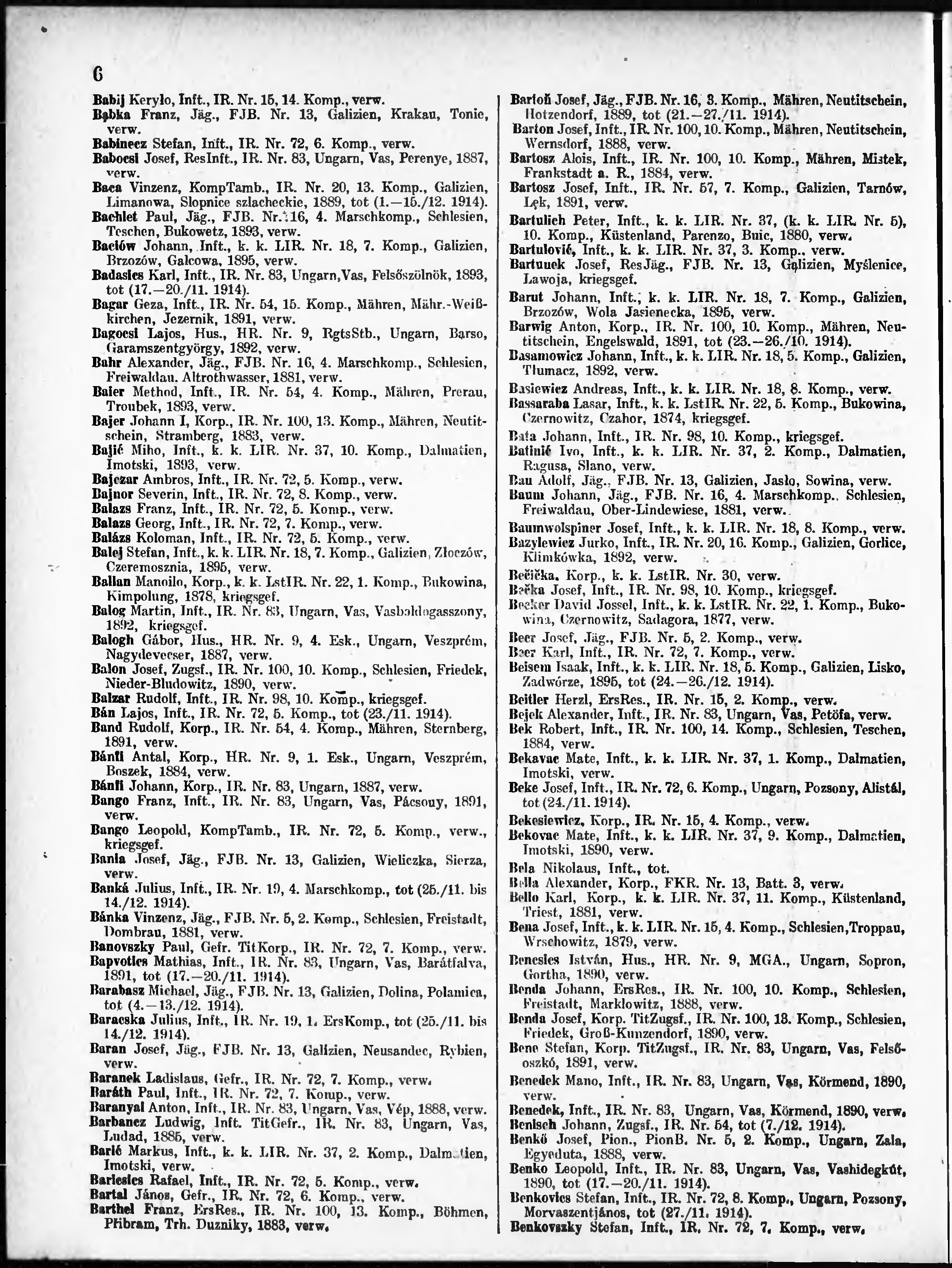 Verlustliste ausgegeben am