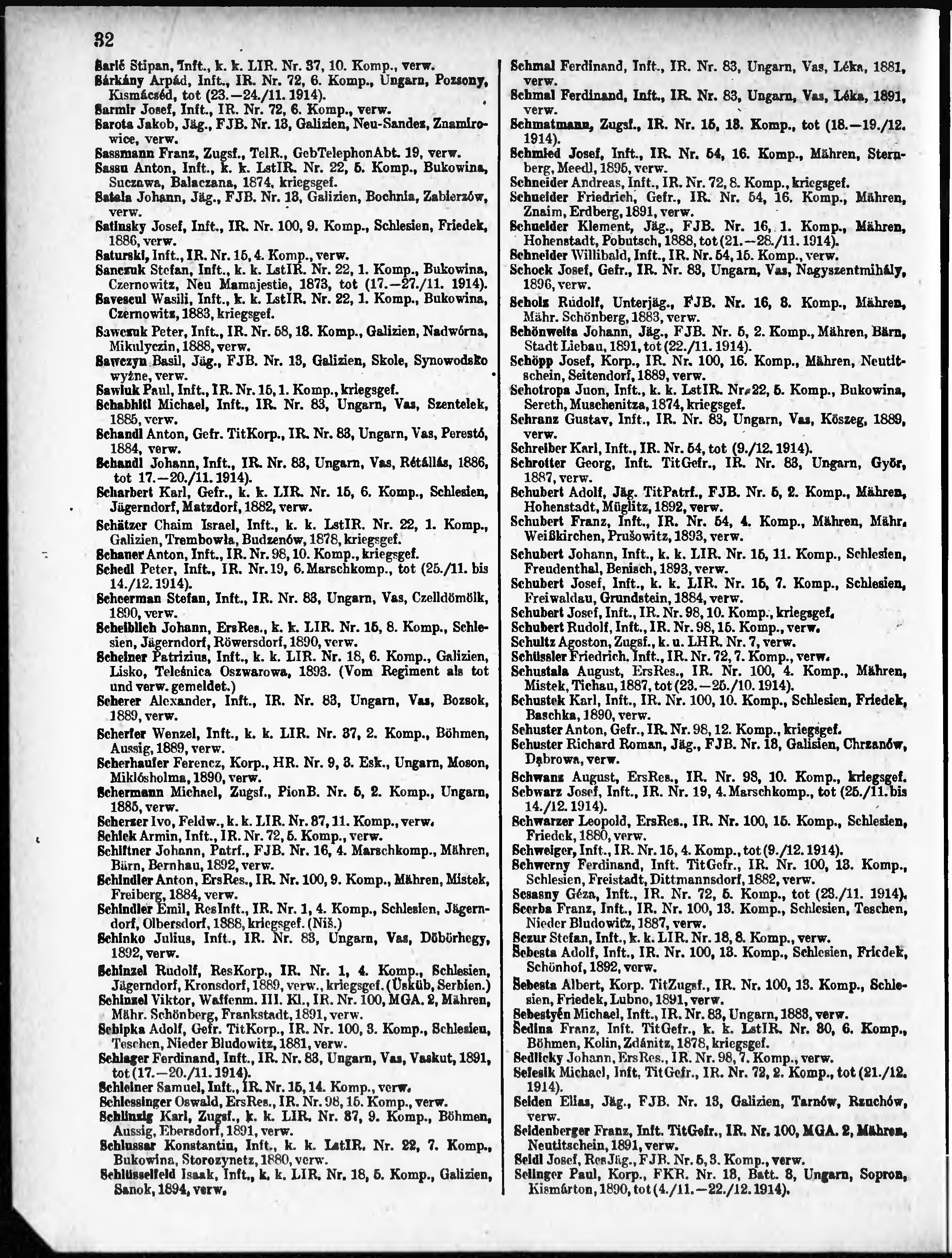 Verlustliste ausgegeben am