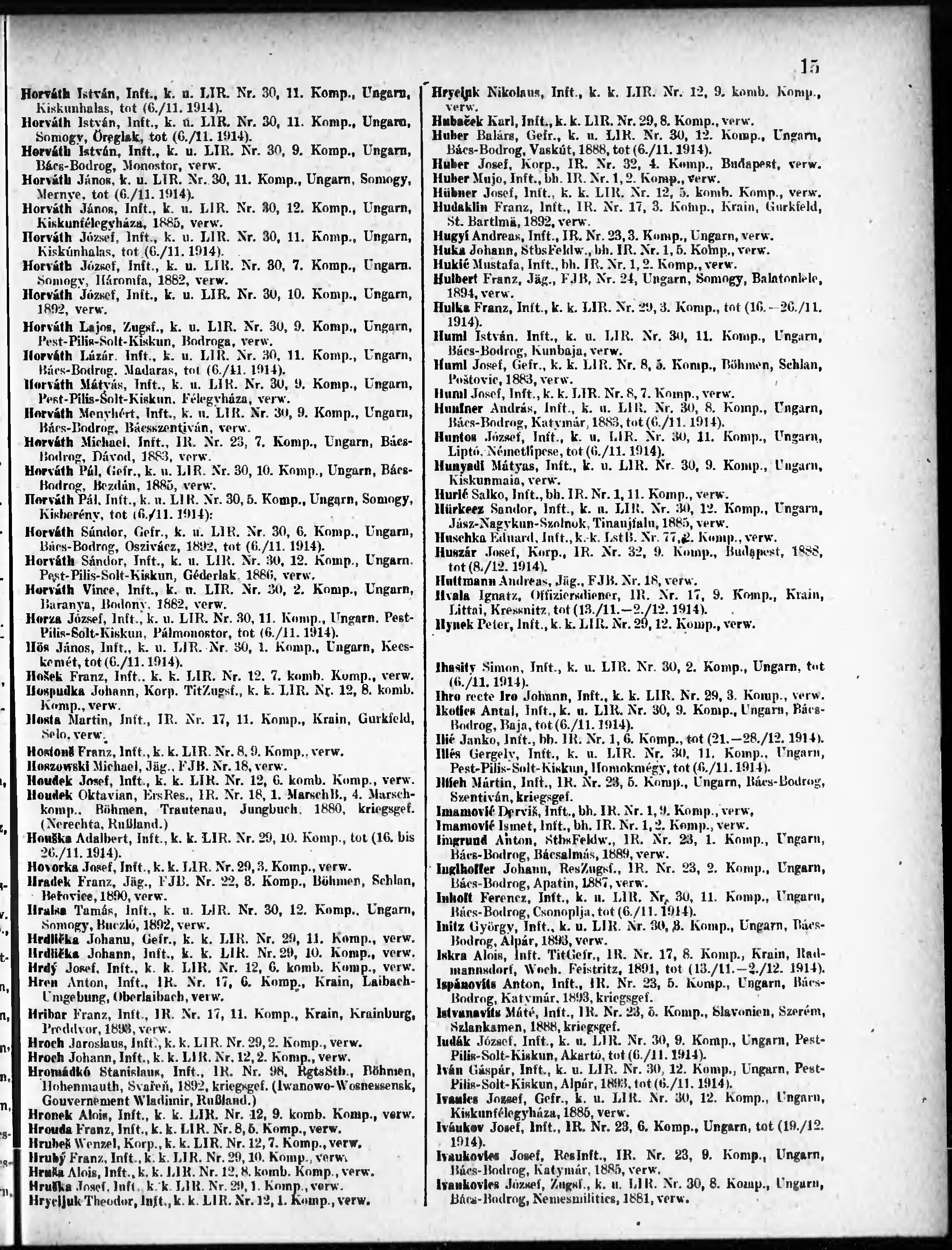Verlustliste ausgegeben am