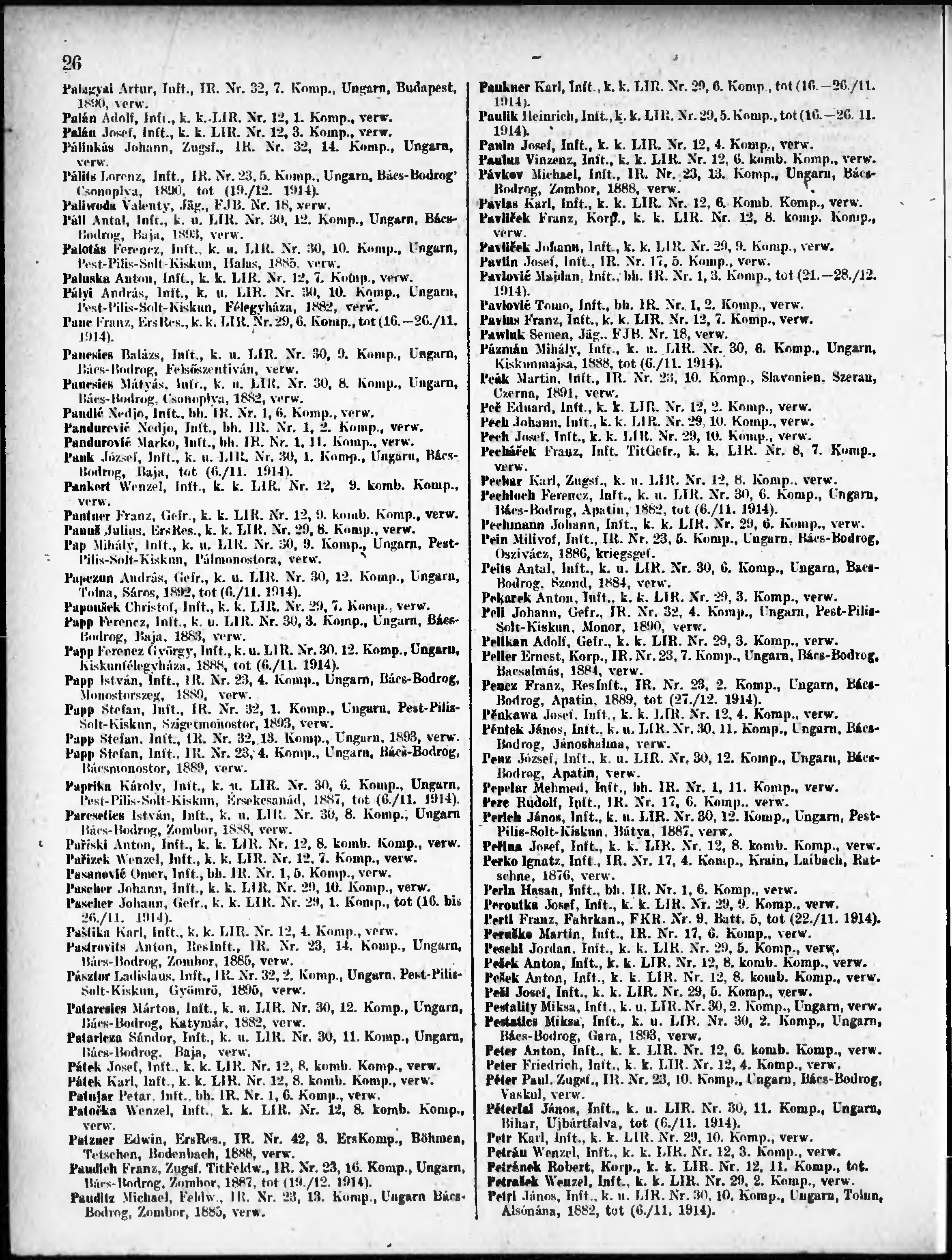 Verlustliste ausgegeben am