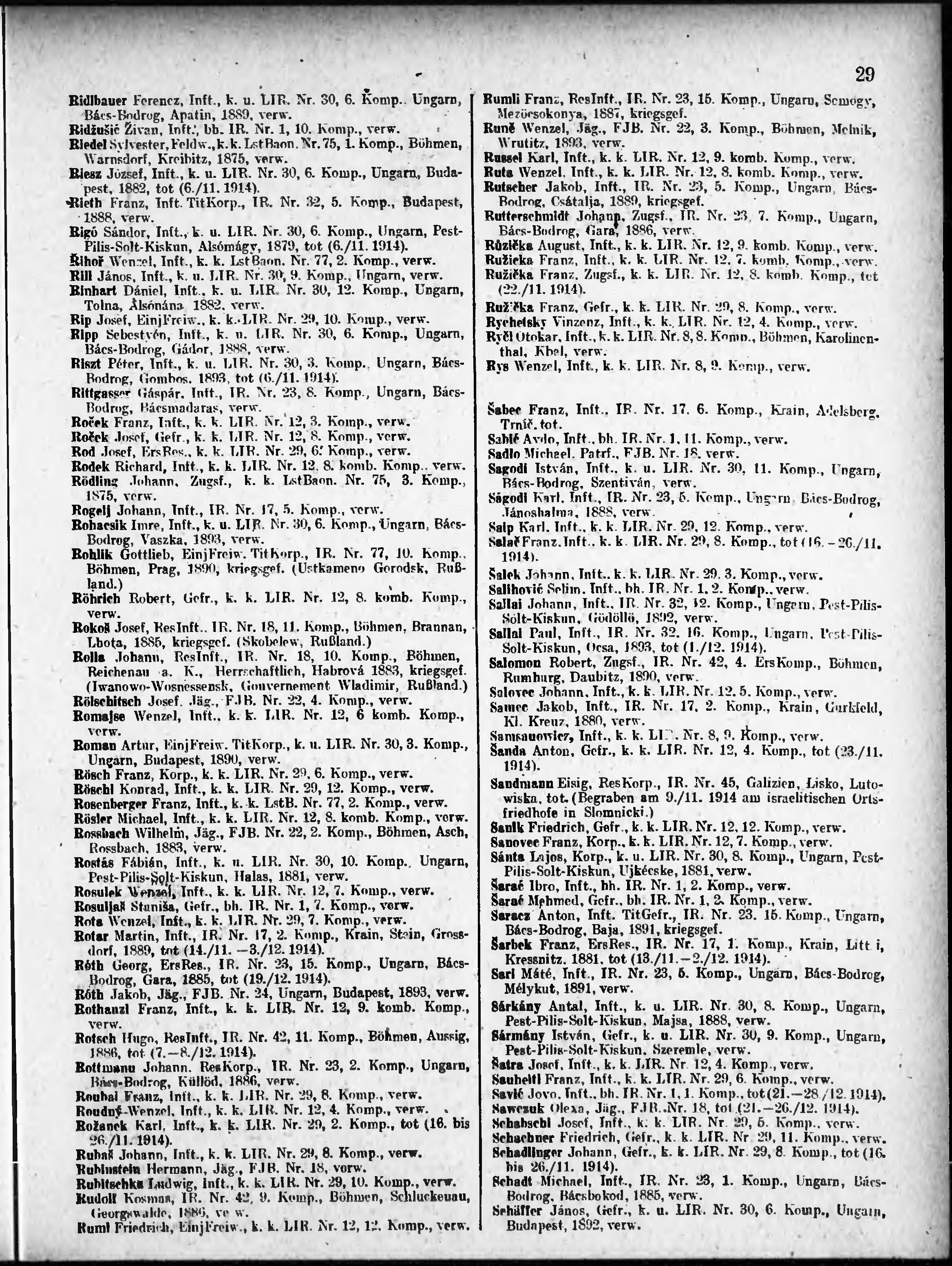 Verlustliste ausgegeben am