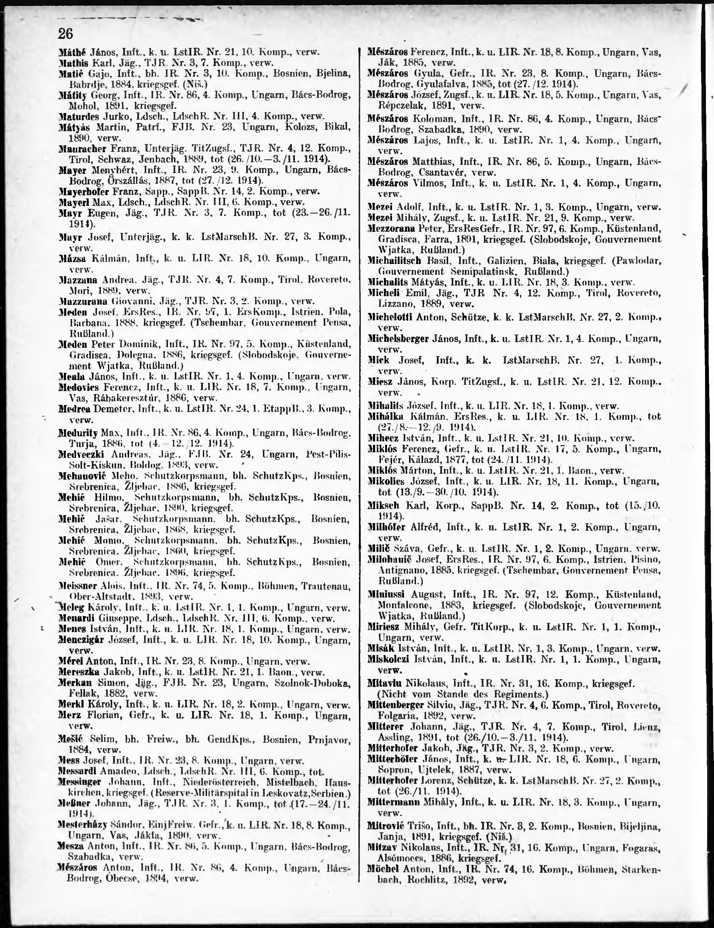 Verlustliste ausgegeben am