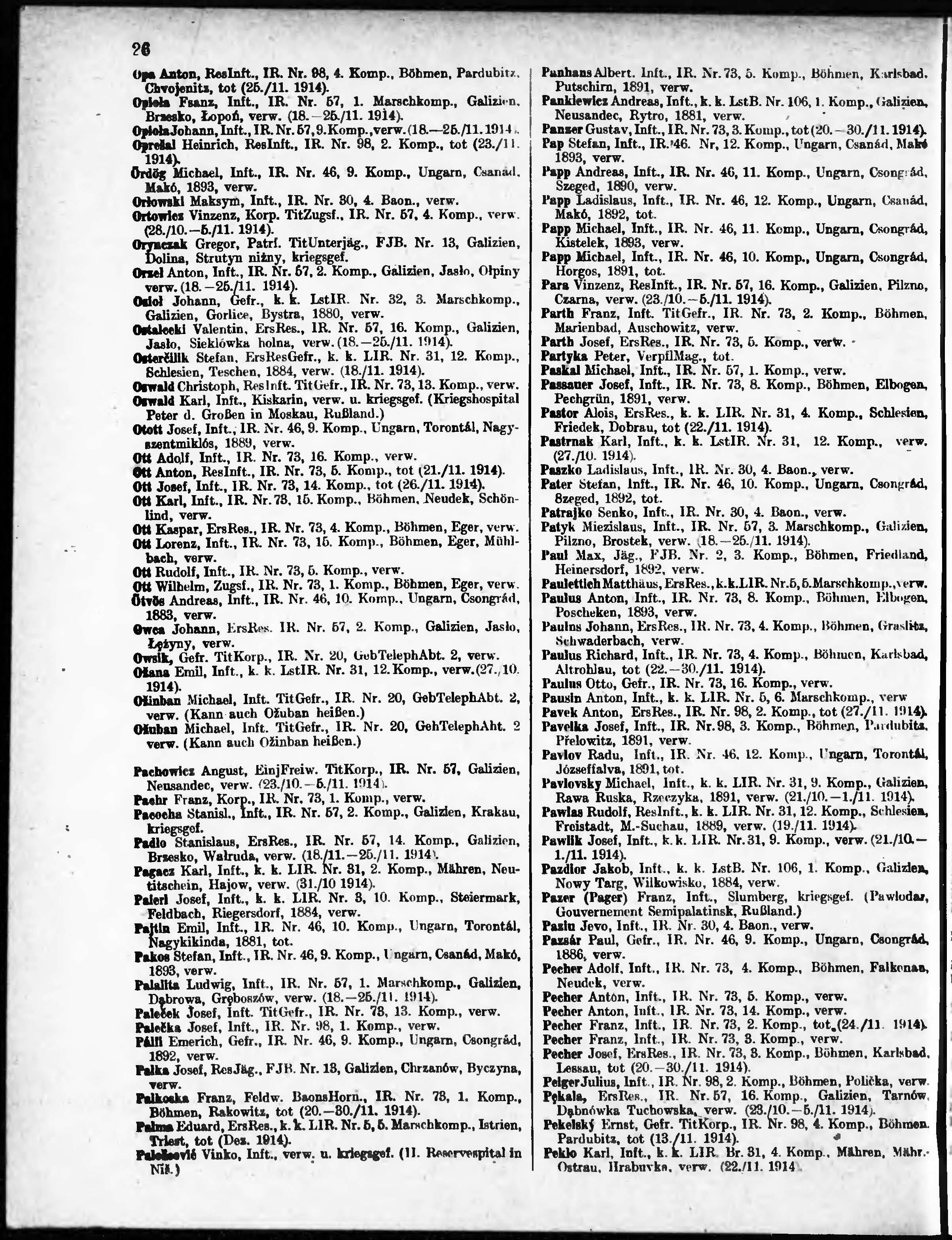 Verlustliste ausgegeben am