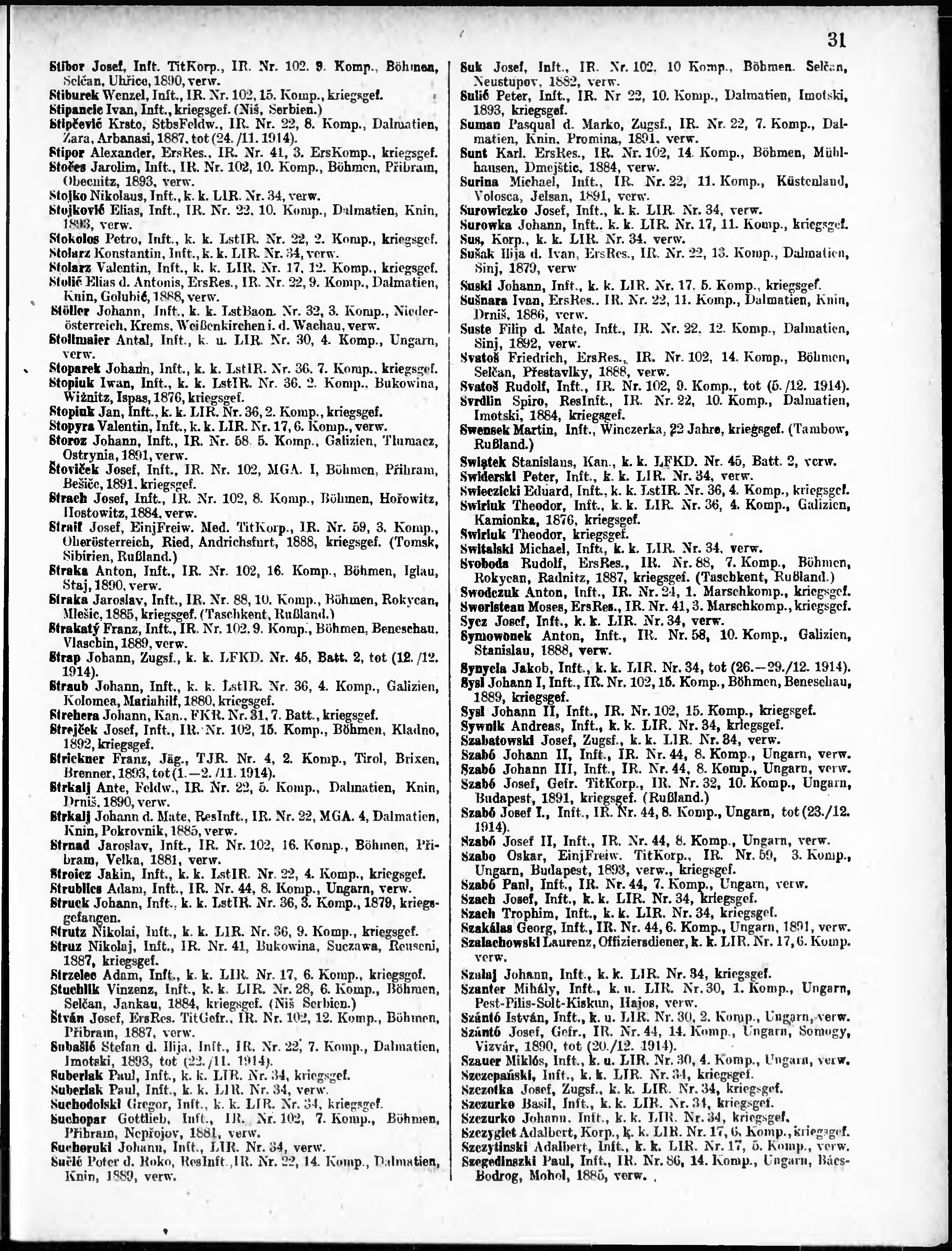 Verlustliste ausgegeben am