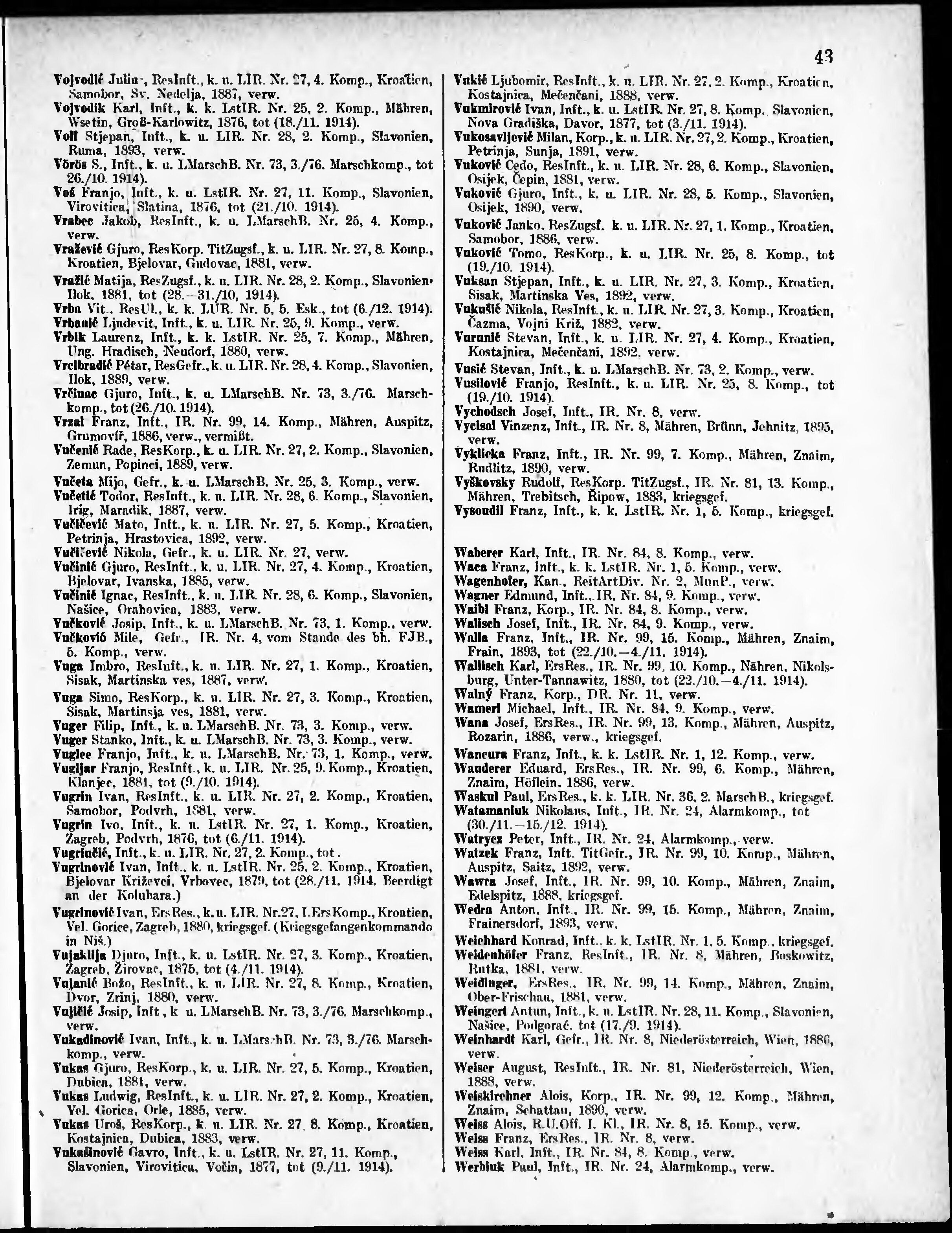 Verlustliste ausgegeben am