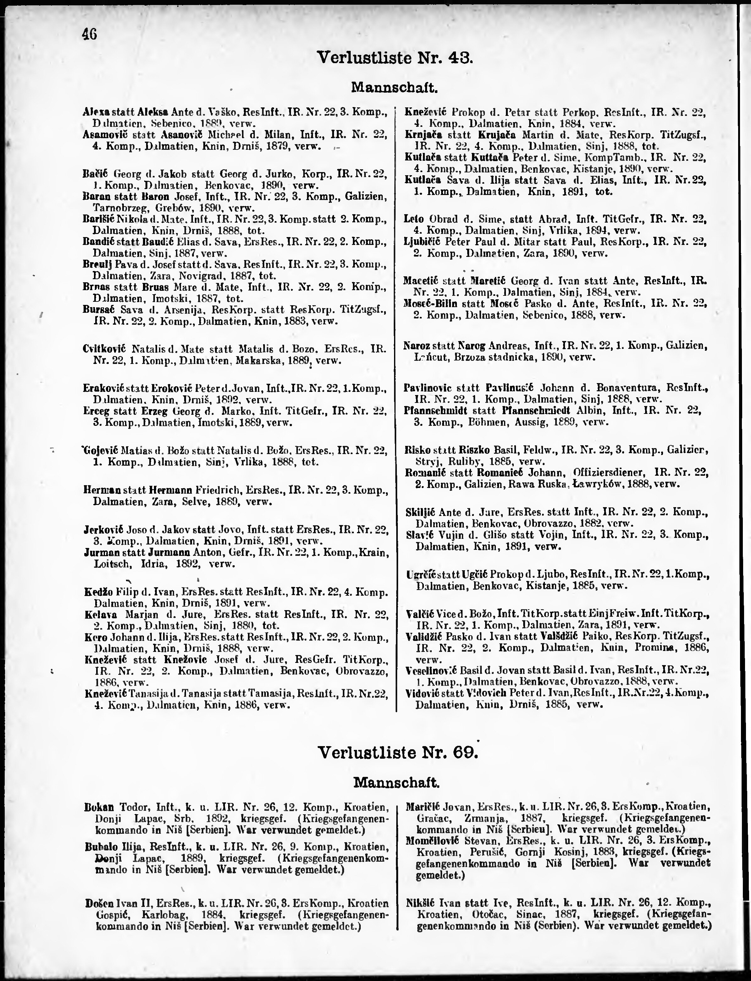 Verlustliste ausgegeben am