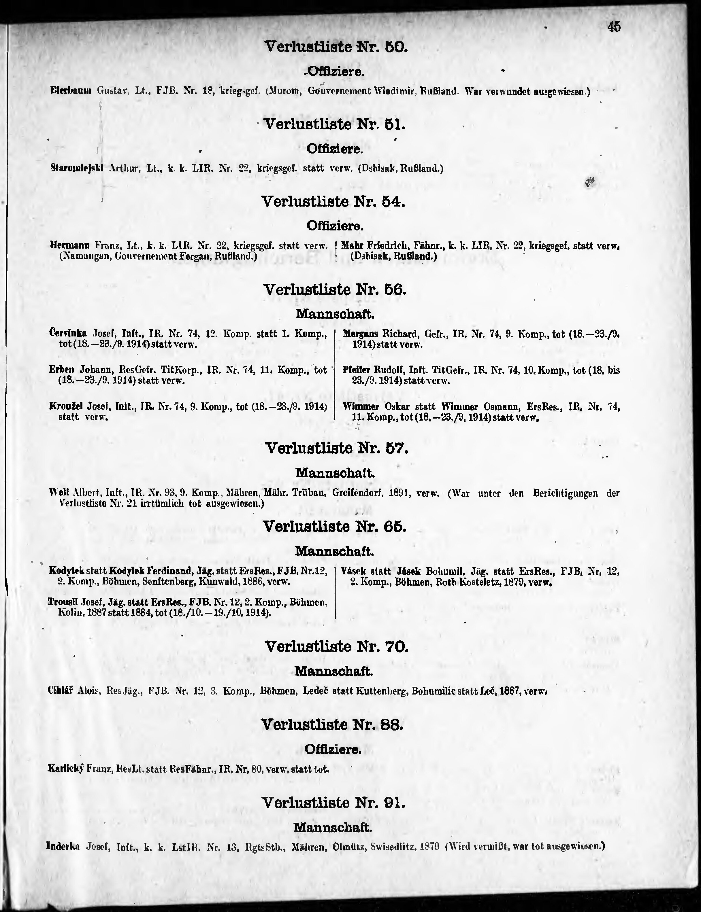 Verlustliste ausgegeben am