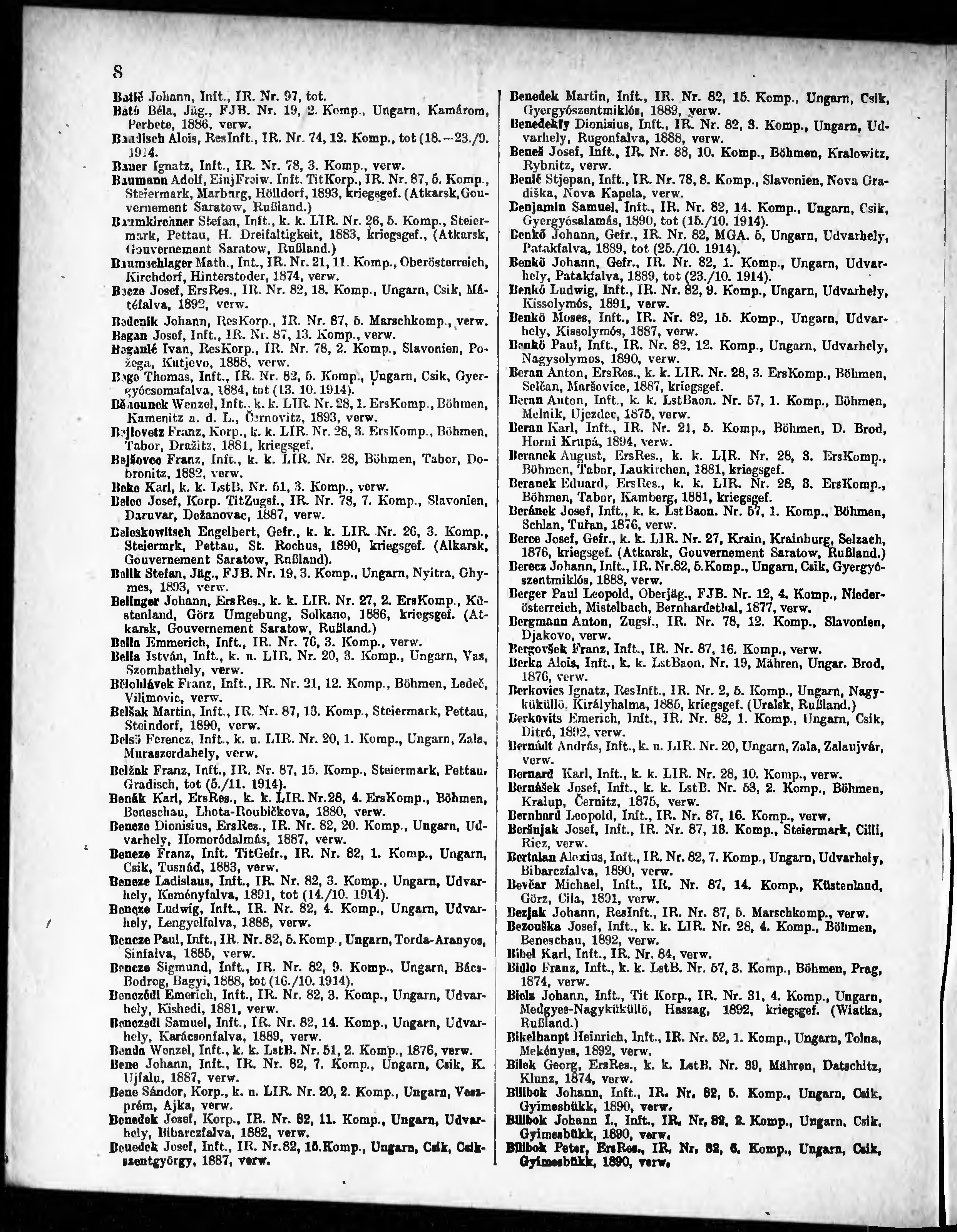 Verlustliste ausgegeben am