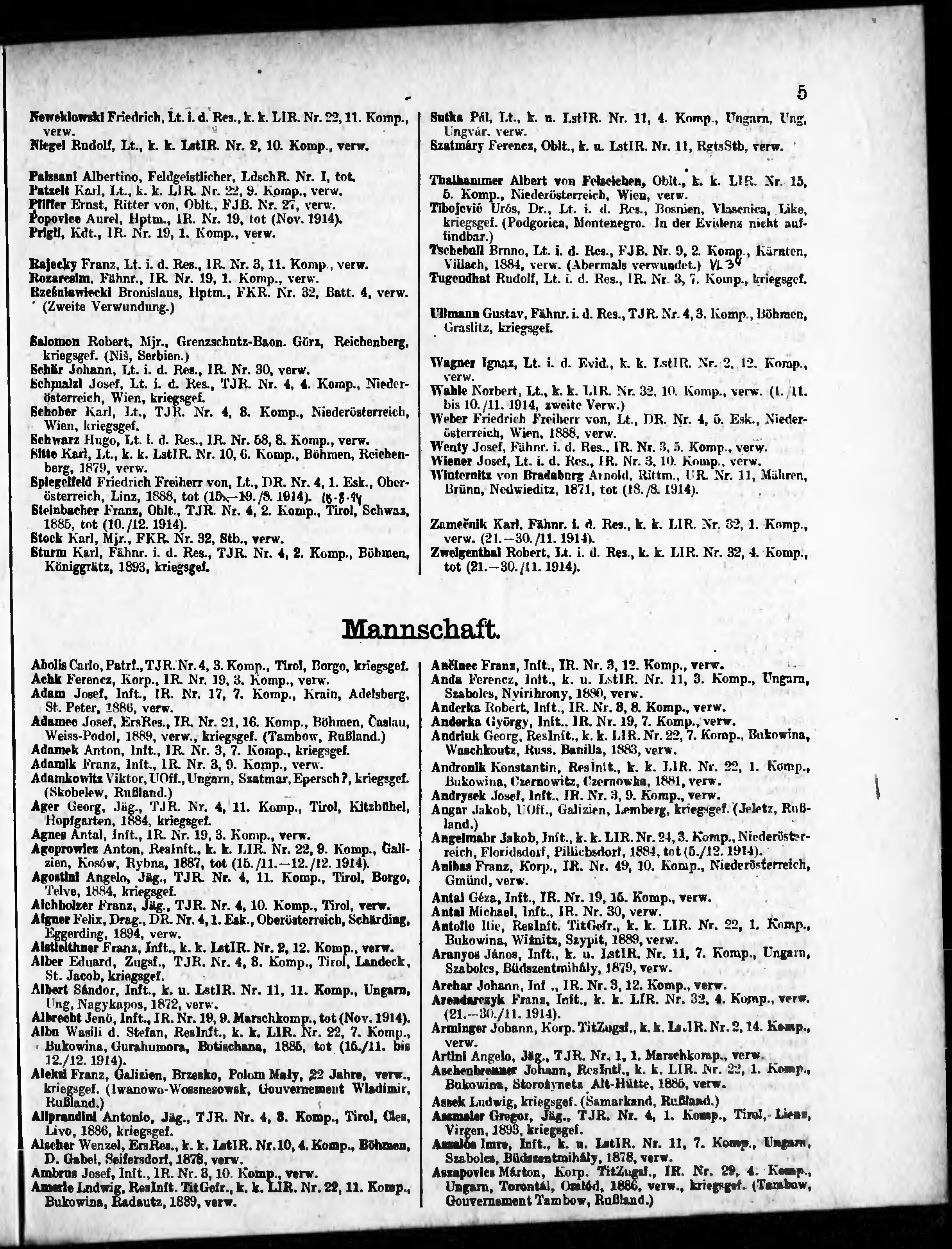 Verlustliste ausgegeben am