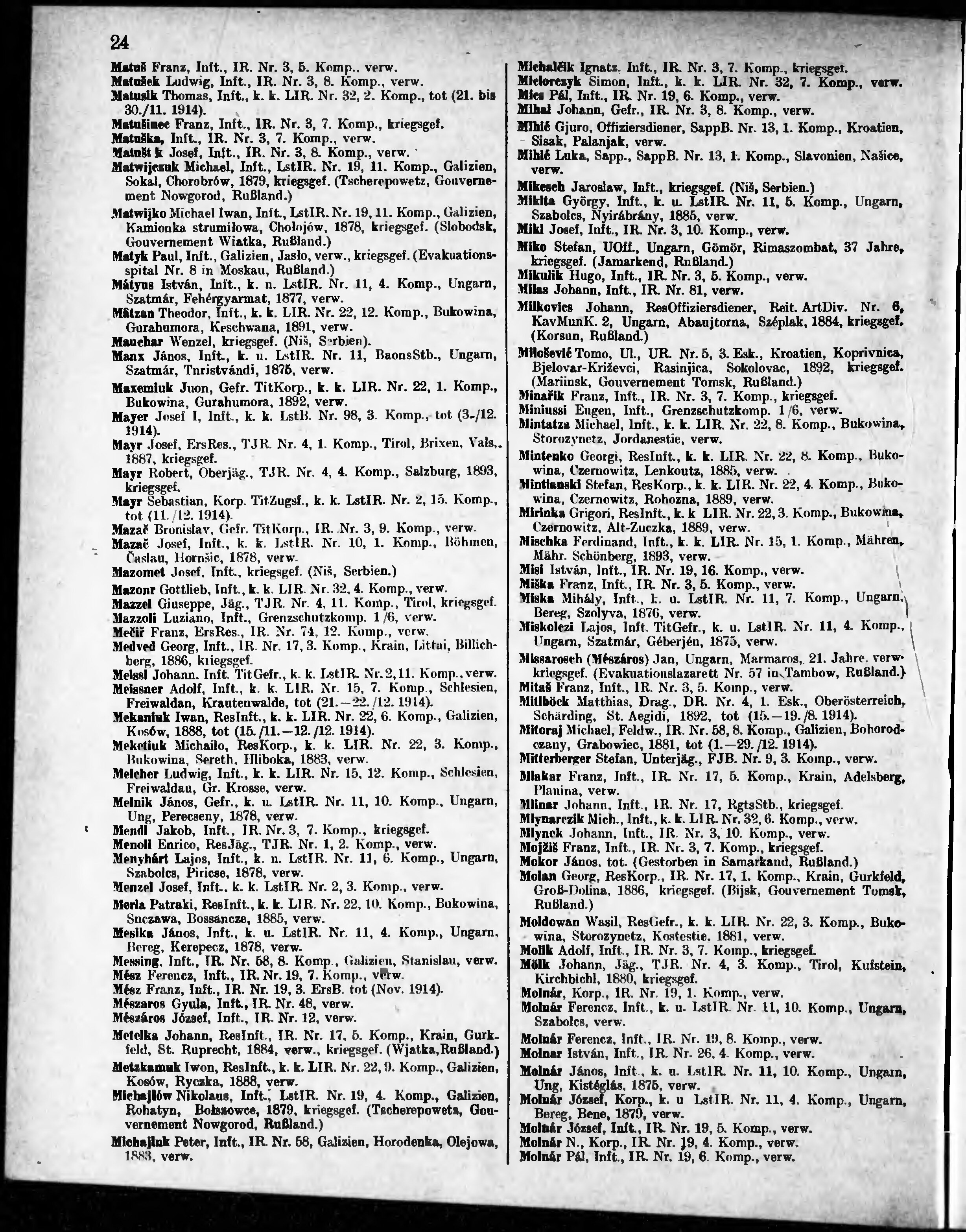 Verlustliste ausgegeben am