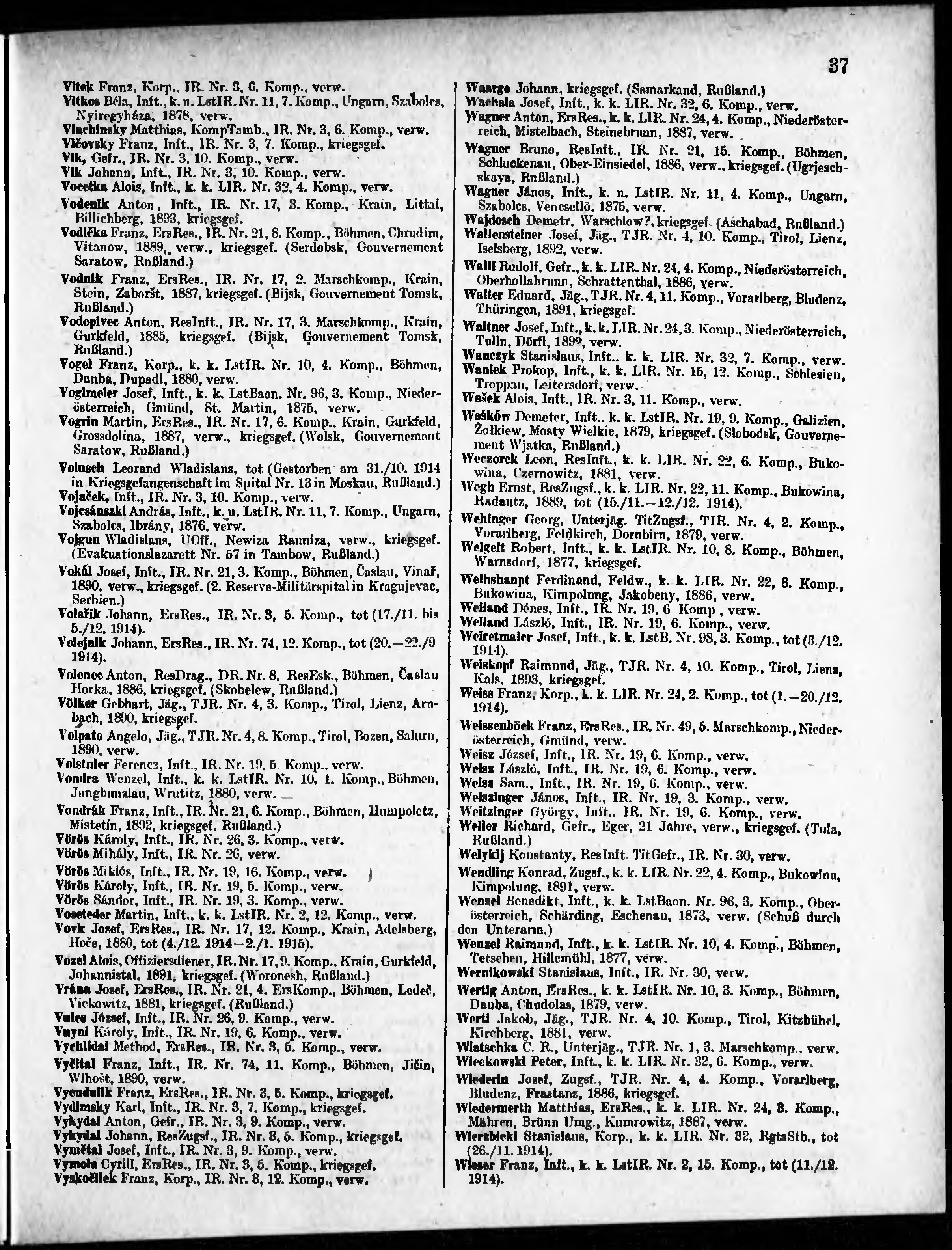 Verlustliste ausgegeben am