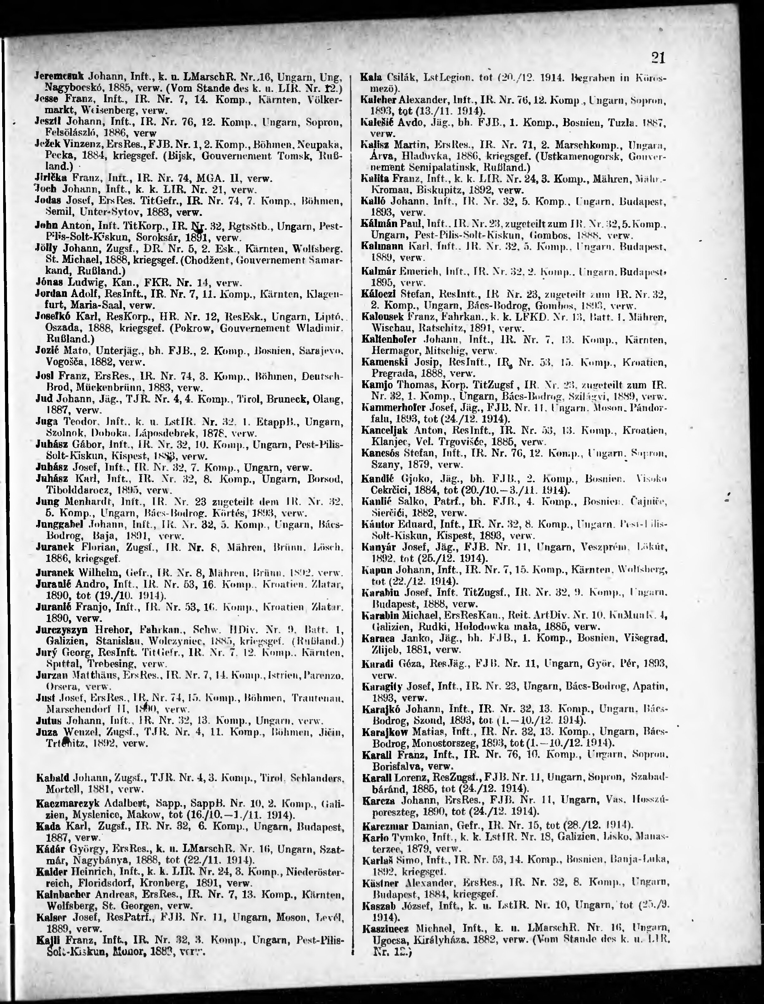 Verlustliste ausgegeben am