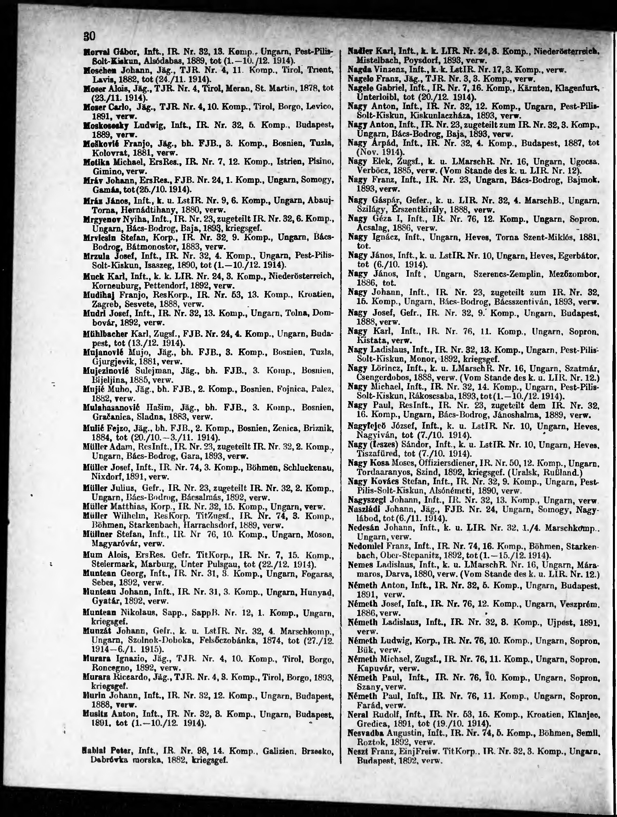 Verlustliste ausgegeben am