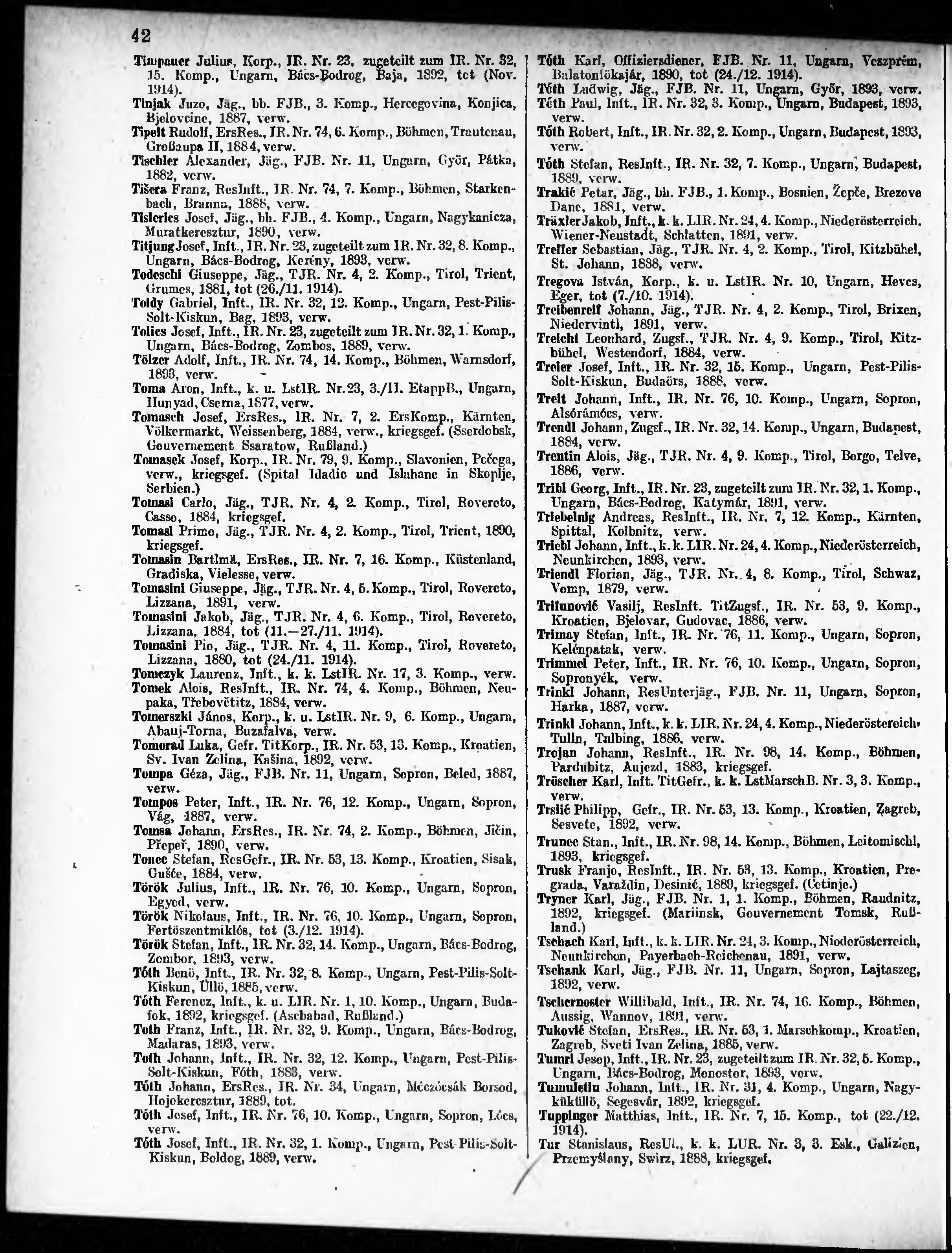 Verlustliste ausgegeben am