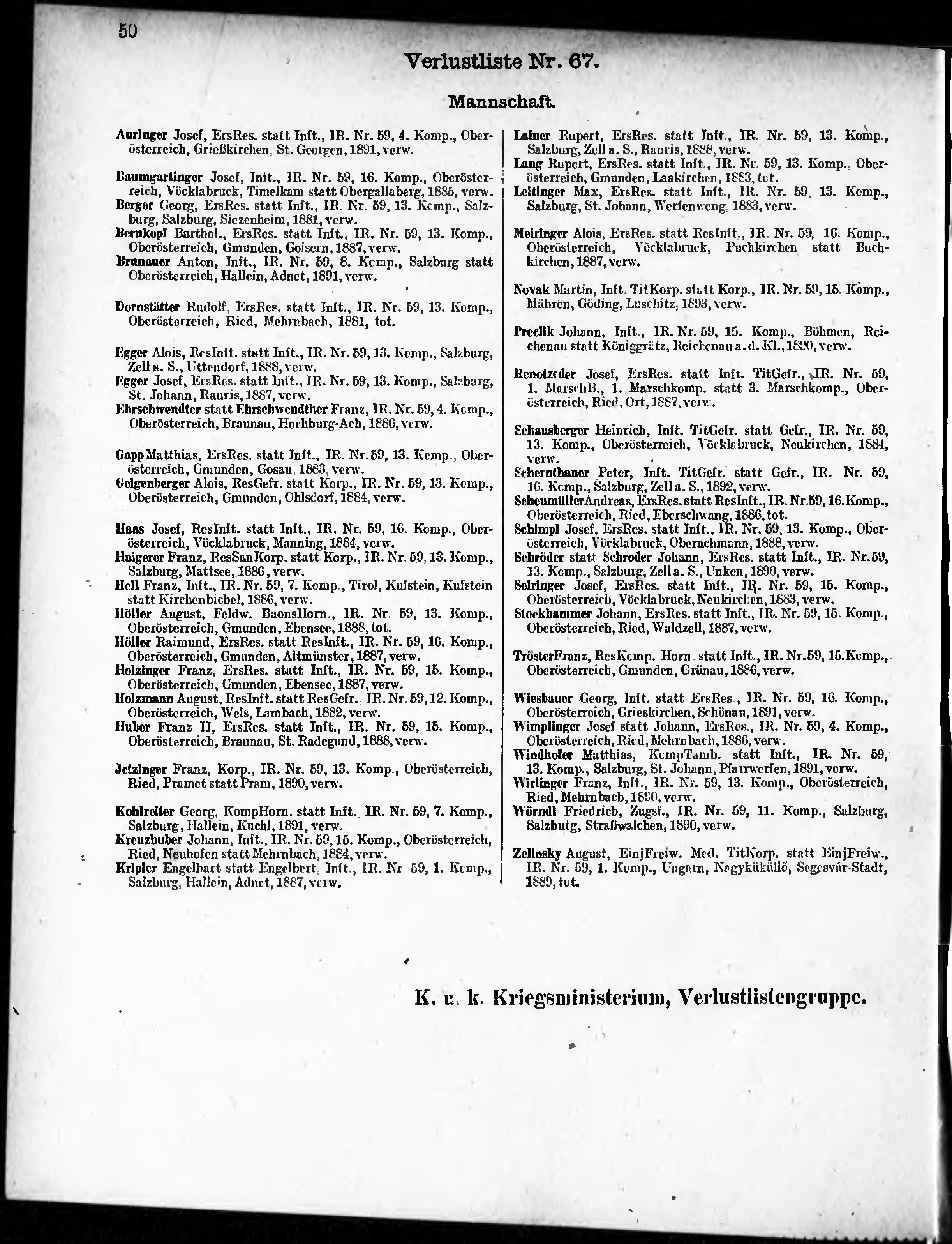 Verlustliste ausgegeben am