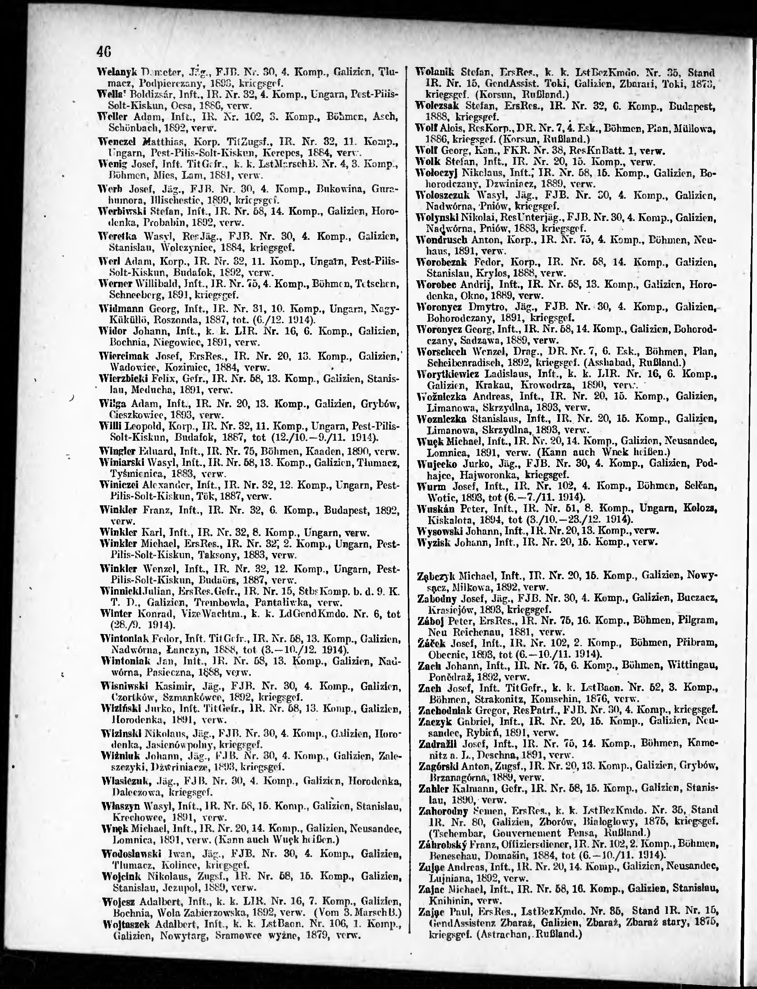 Verlustliste ausgegeben am