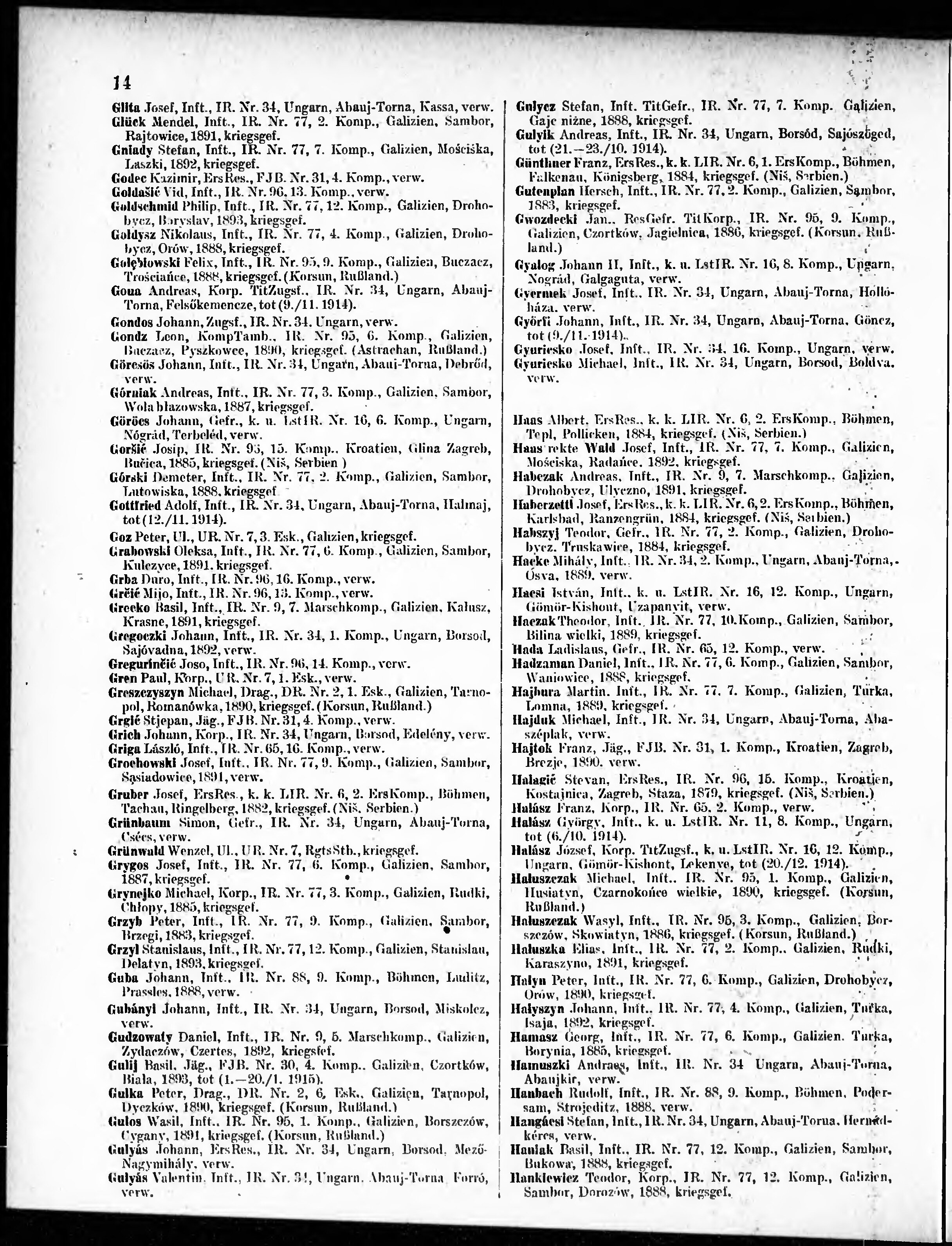 Verlustliste ausgegeben am