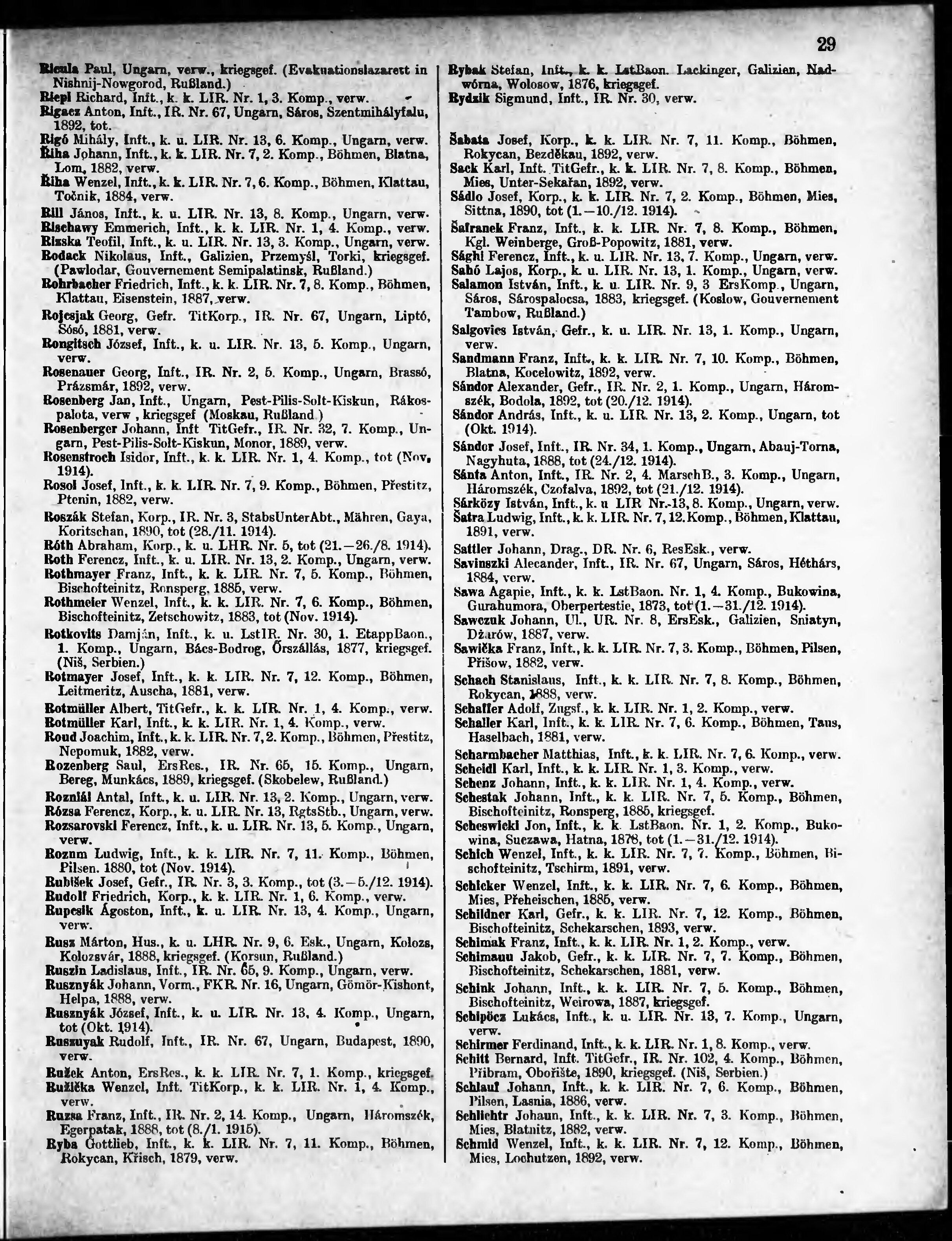 Verlustliste ausgegeben am