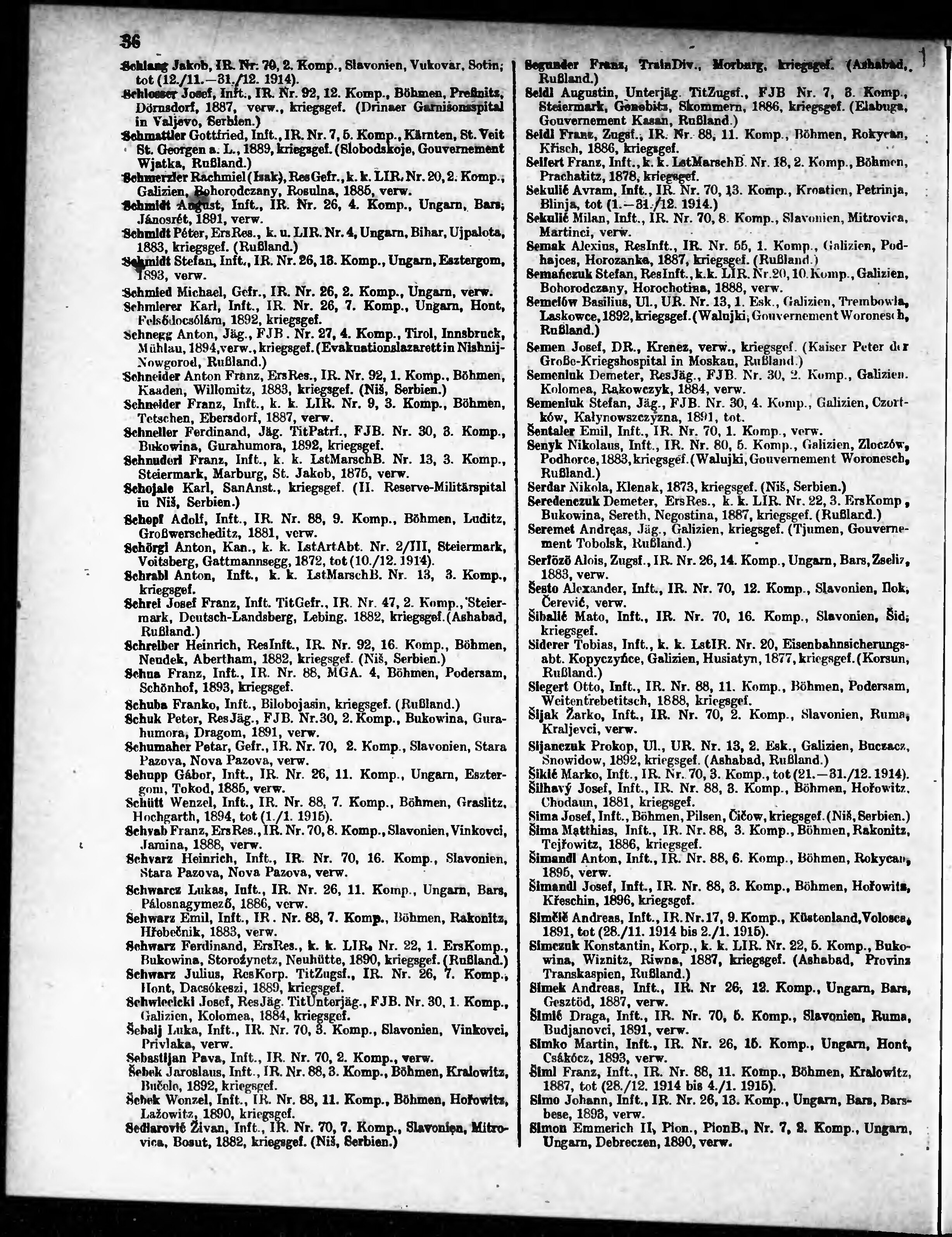 Verlustliste ausgegeben am