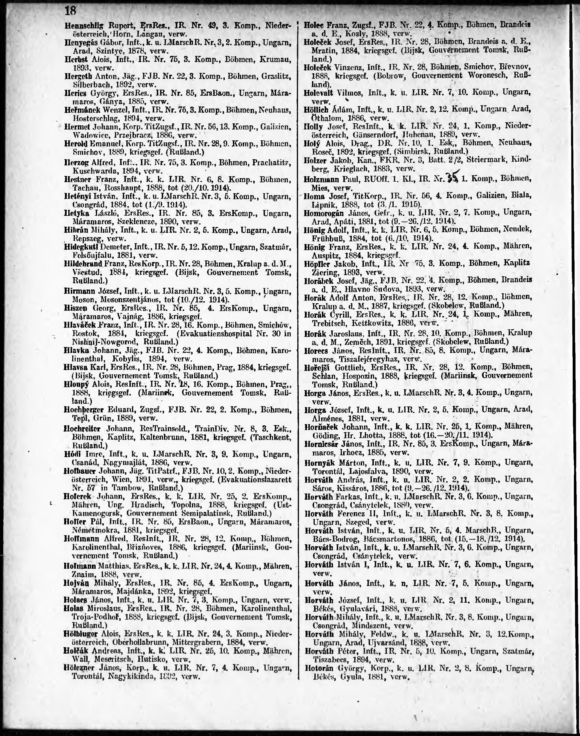 Verlustliste ausgegeben am