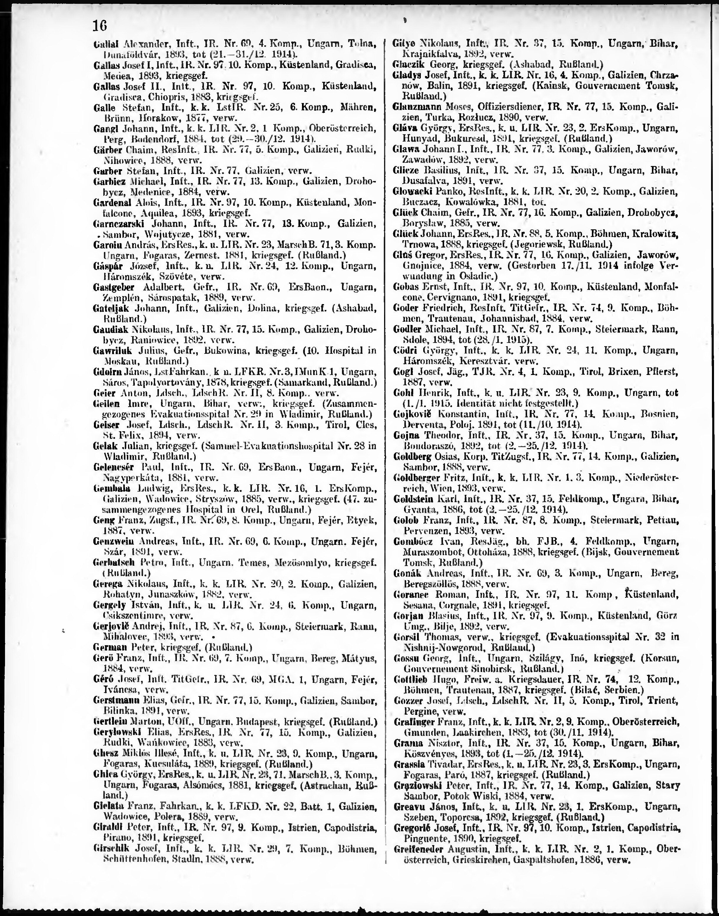 Verlustliste ausgegeben am