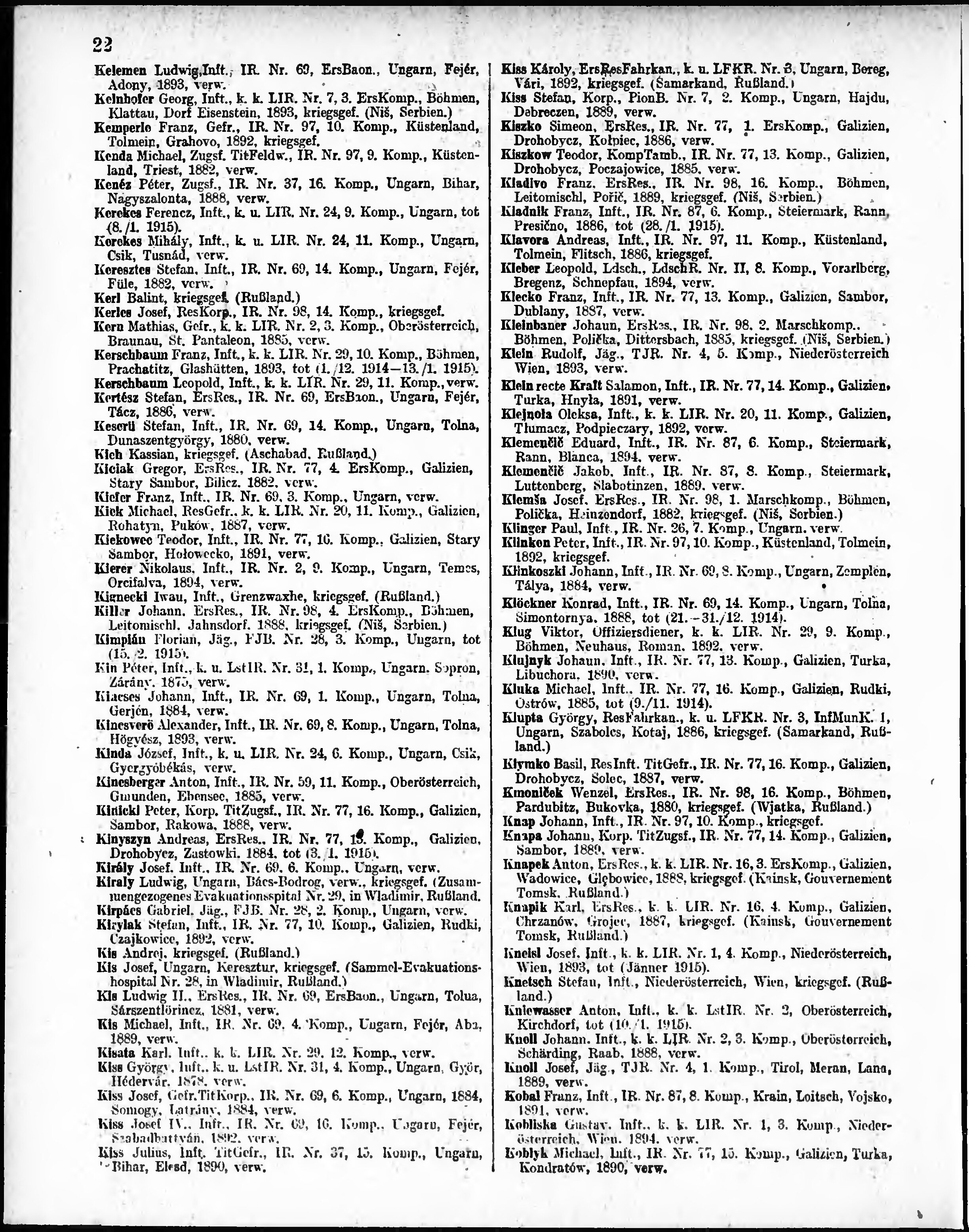 Verlustliste ausgegeben am