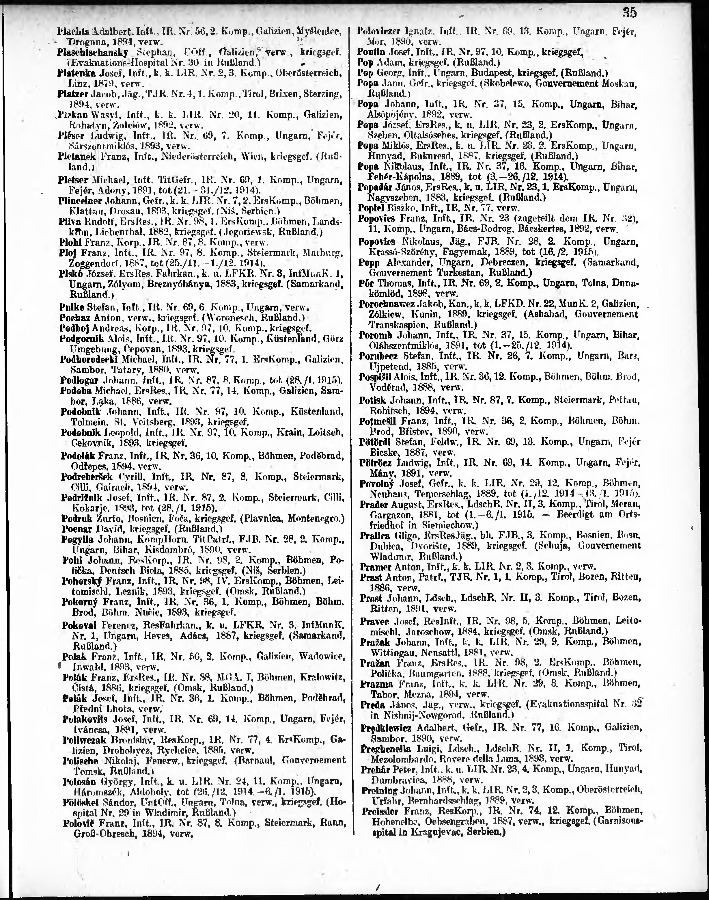 Verlustliste ausgegeben am