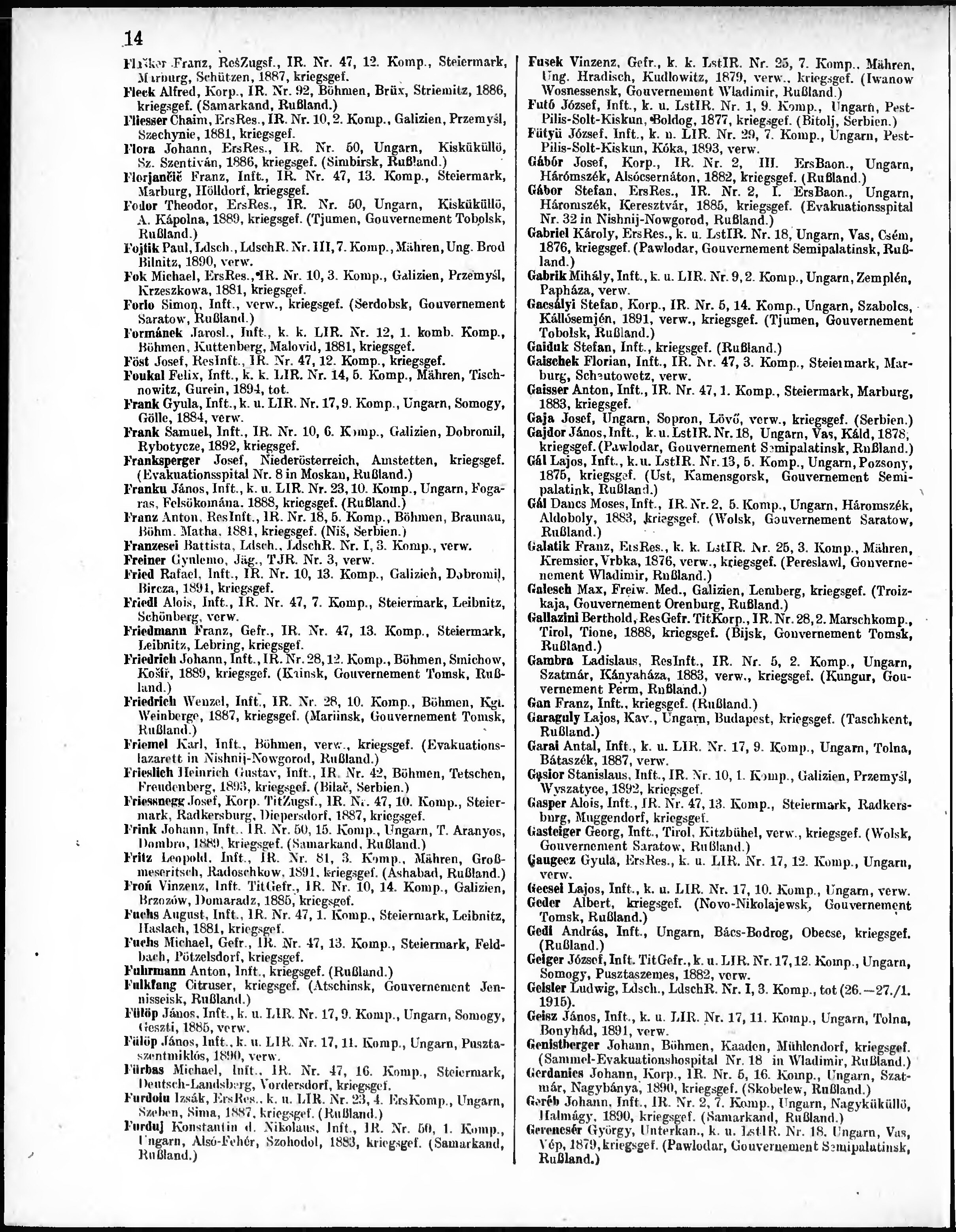 Verlustliste ausgegeben am