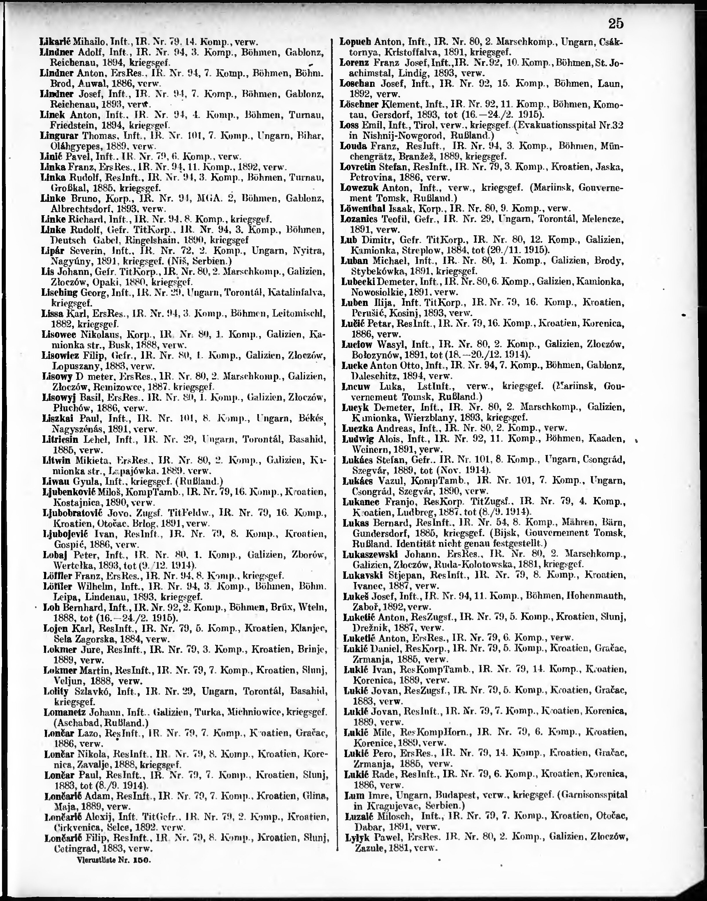 Verlustliste ausgegeben am