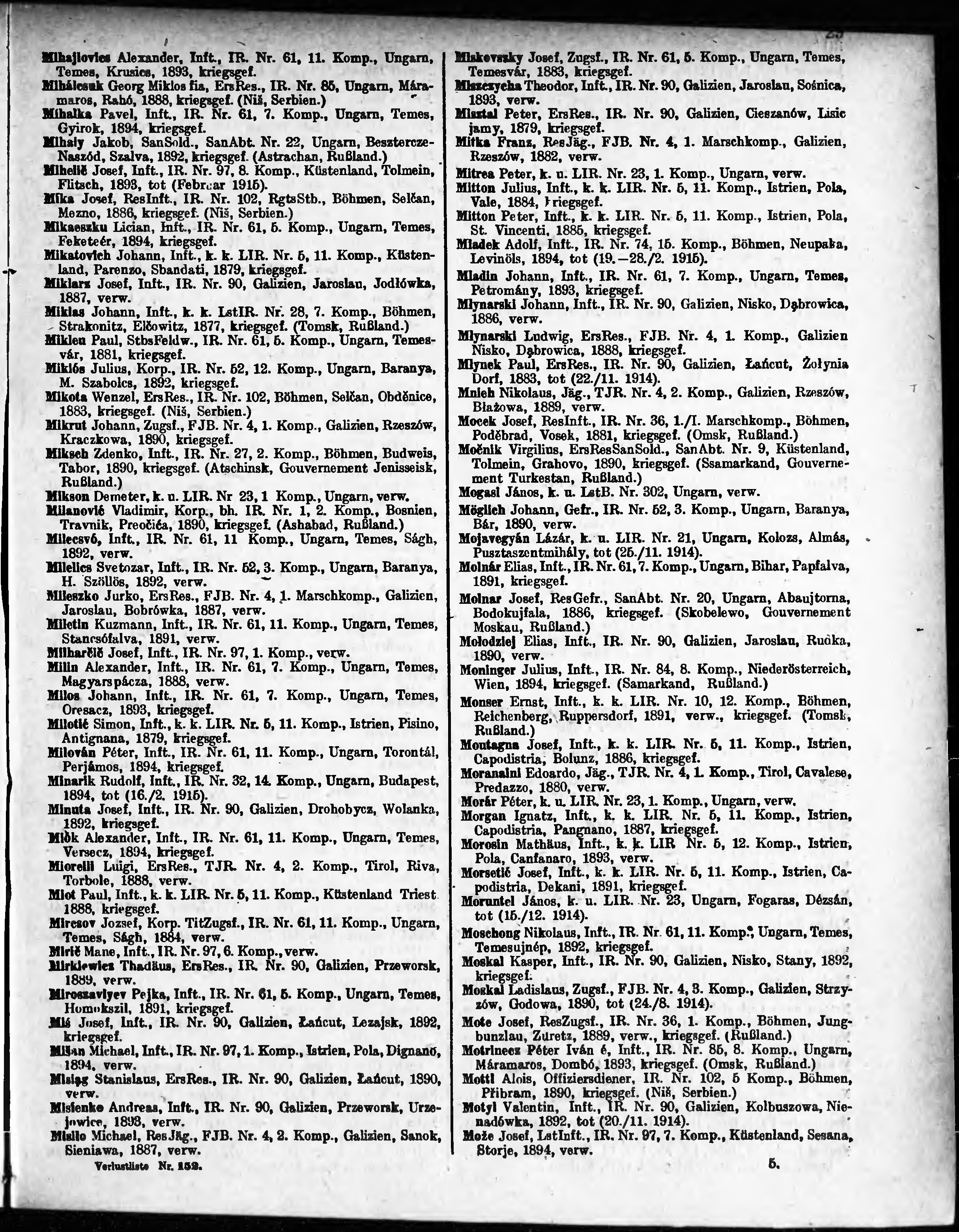 Verlustliste ausgegeben am