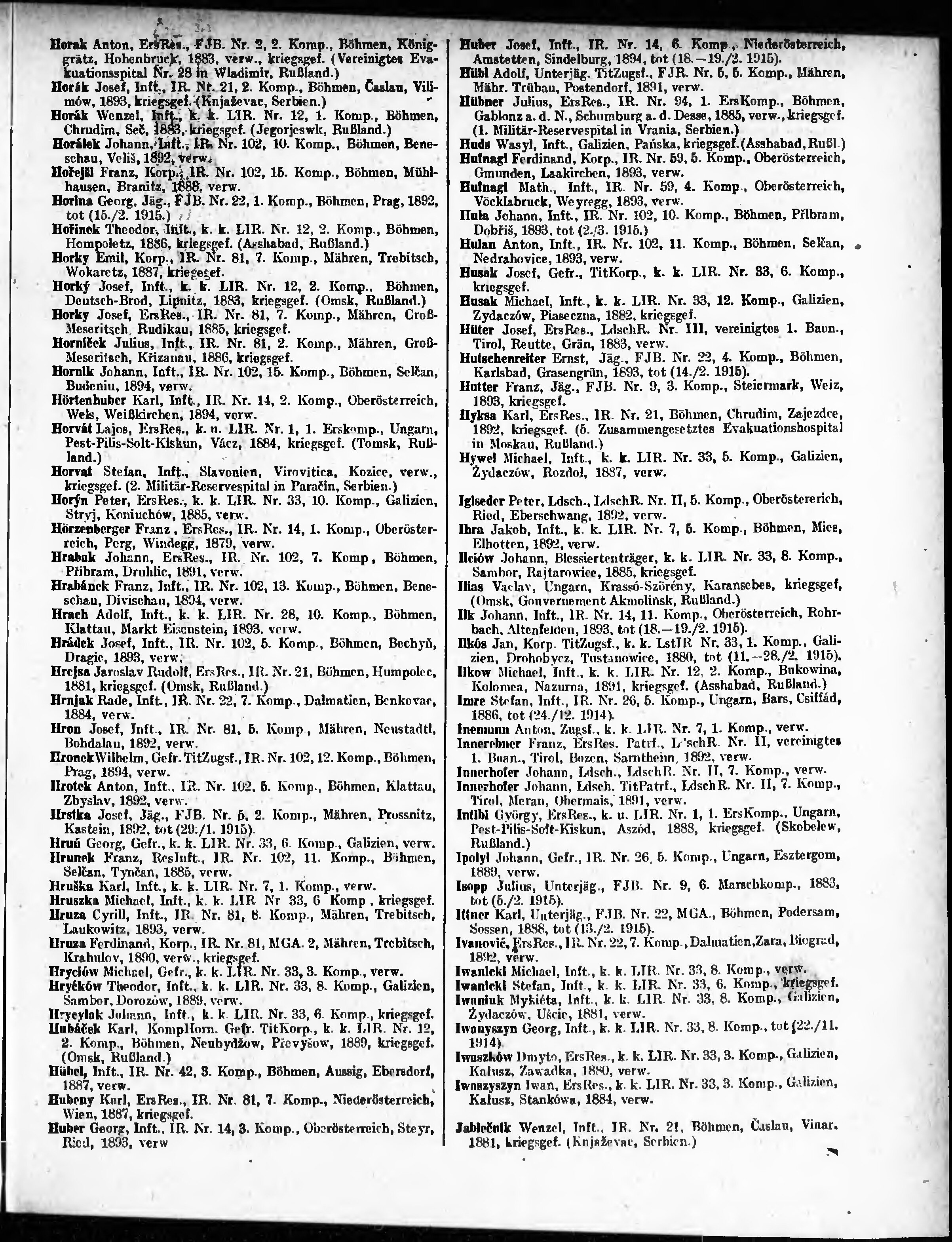 Verlustliste ausgegeben am