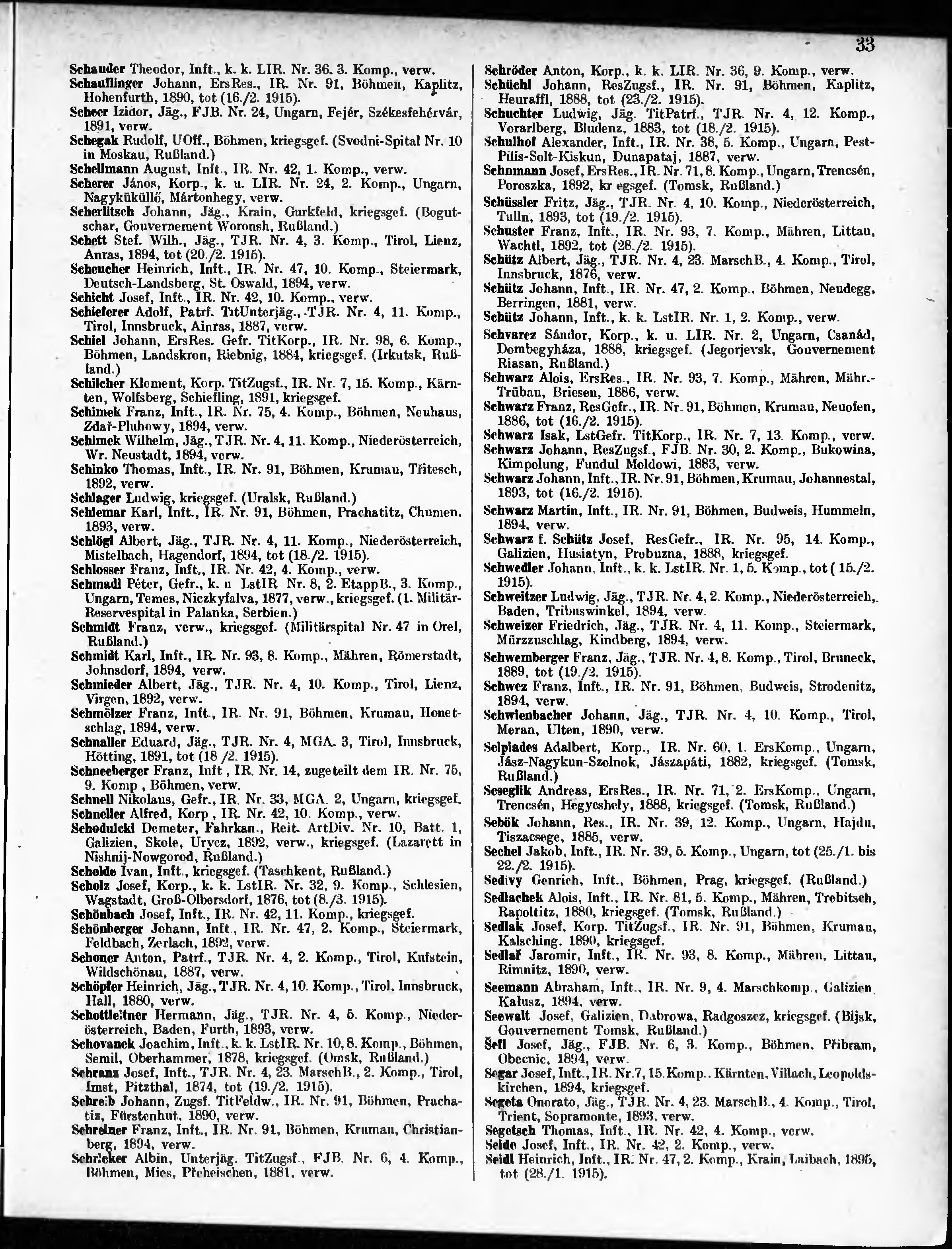 Verlustliste ausgegeben am