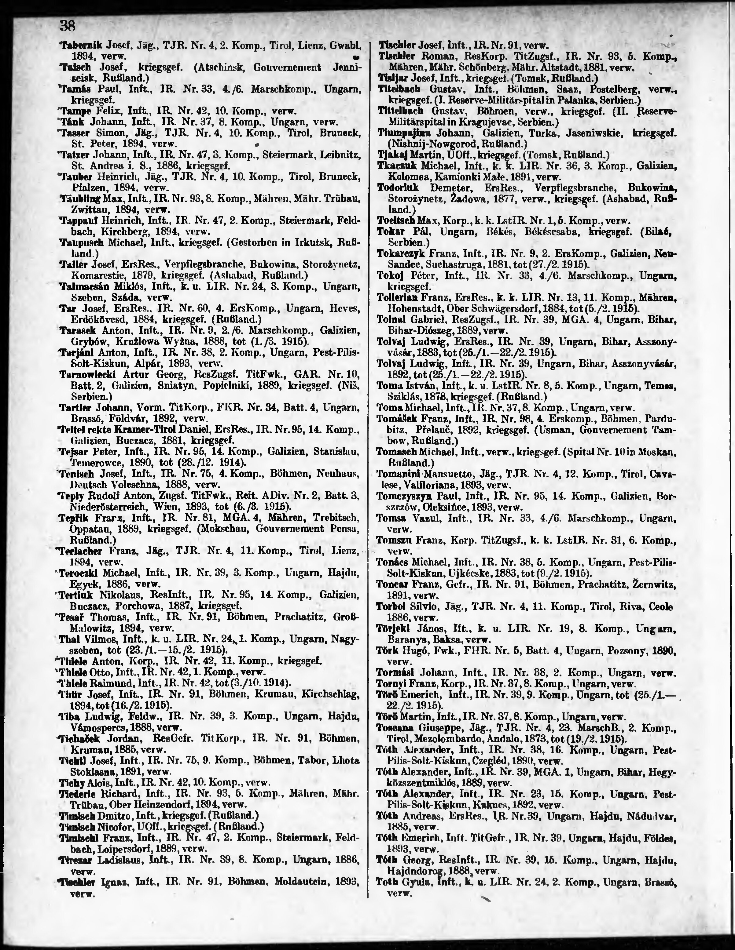 Verlustliste ausgegeben am