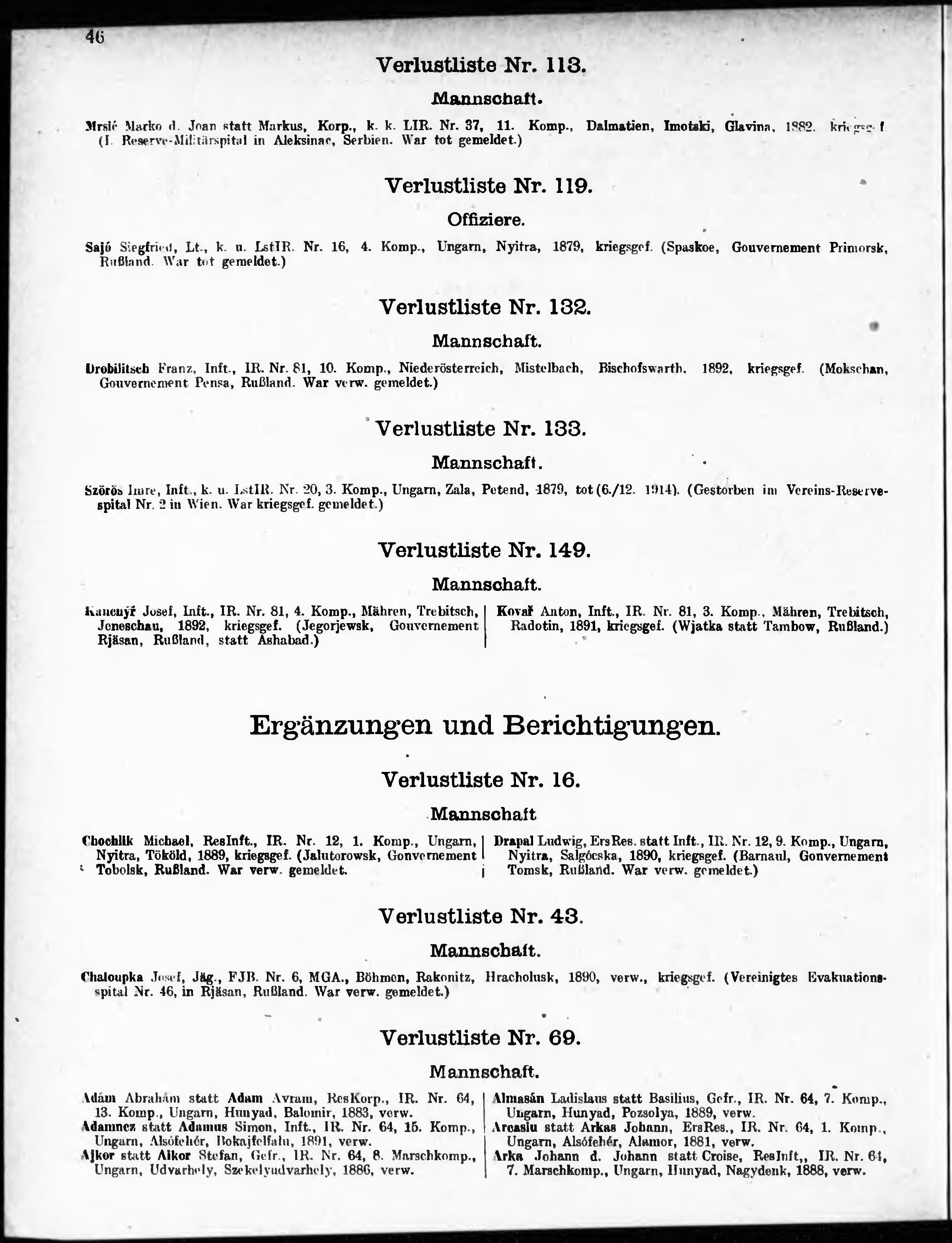 Verlustliste ausgegeben am